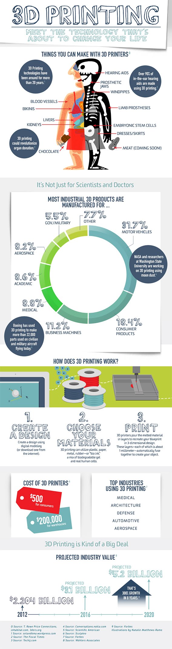 Slate has an infographic by Mark Joseph Stern: here: The graph is titled "Meet the technology thats about to change your life" and contains information like"90% of in-the-ear hearing aids are made using 3D printing." or