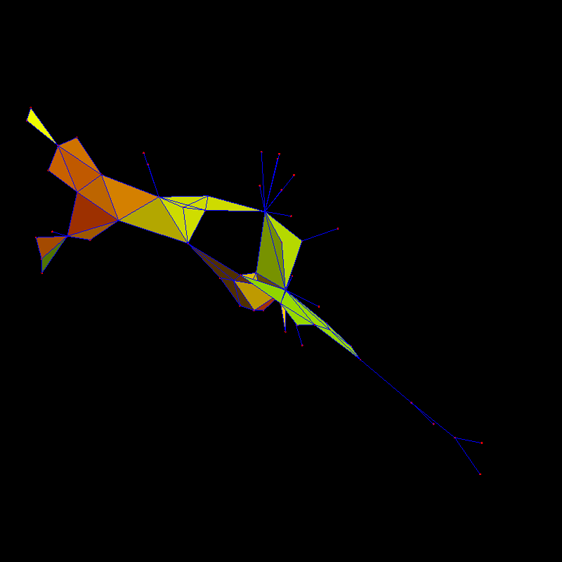 tetrahedral and hypertetrahedra subgraphs which increases the dimension slightly. To the right is the vertex distribution: