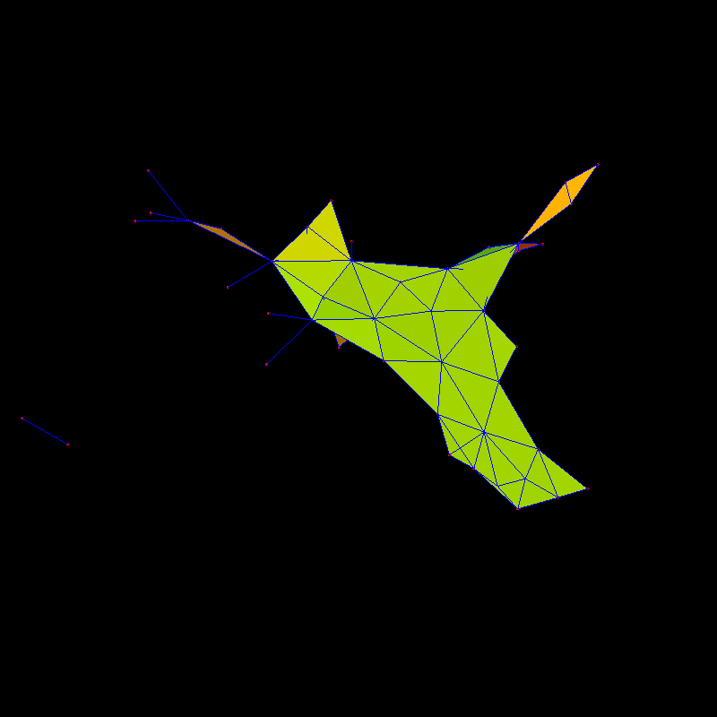 The graph has dimension 1047839931/501781280=2.08824 and Euler characteristic v-e+f-c+w=-5 where v=3141 is the number of vertices,