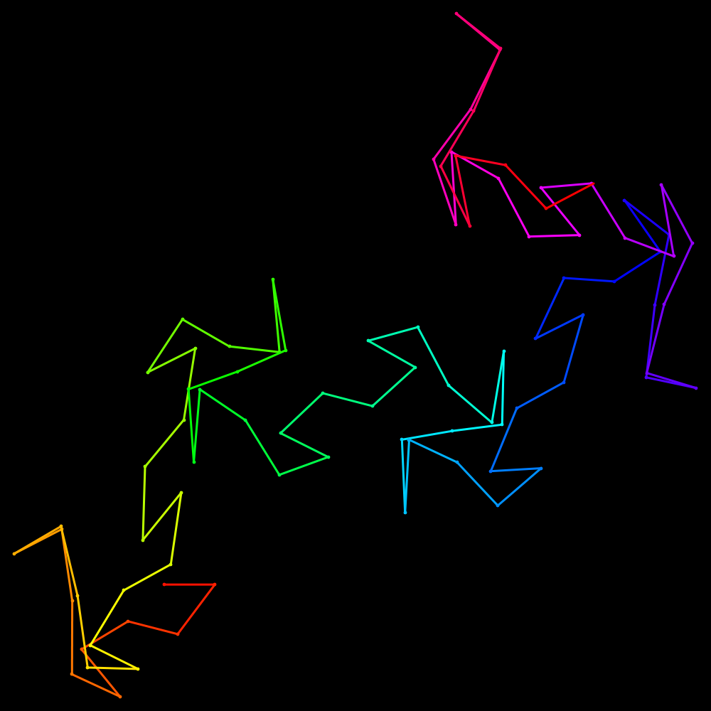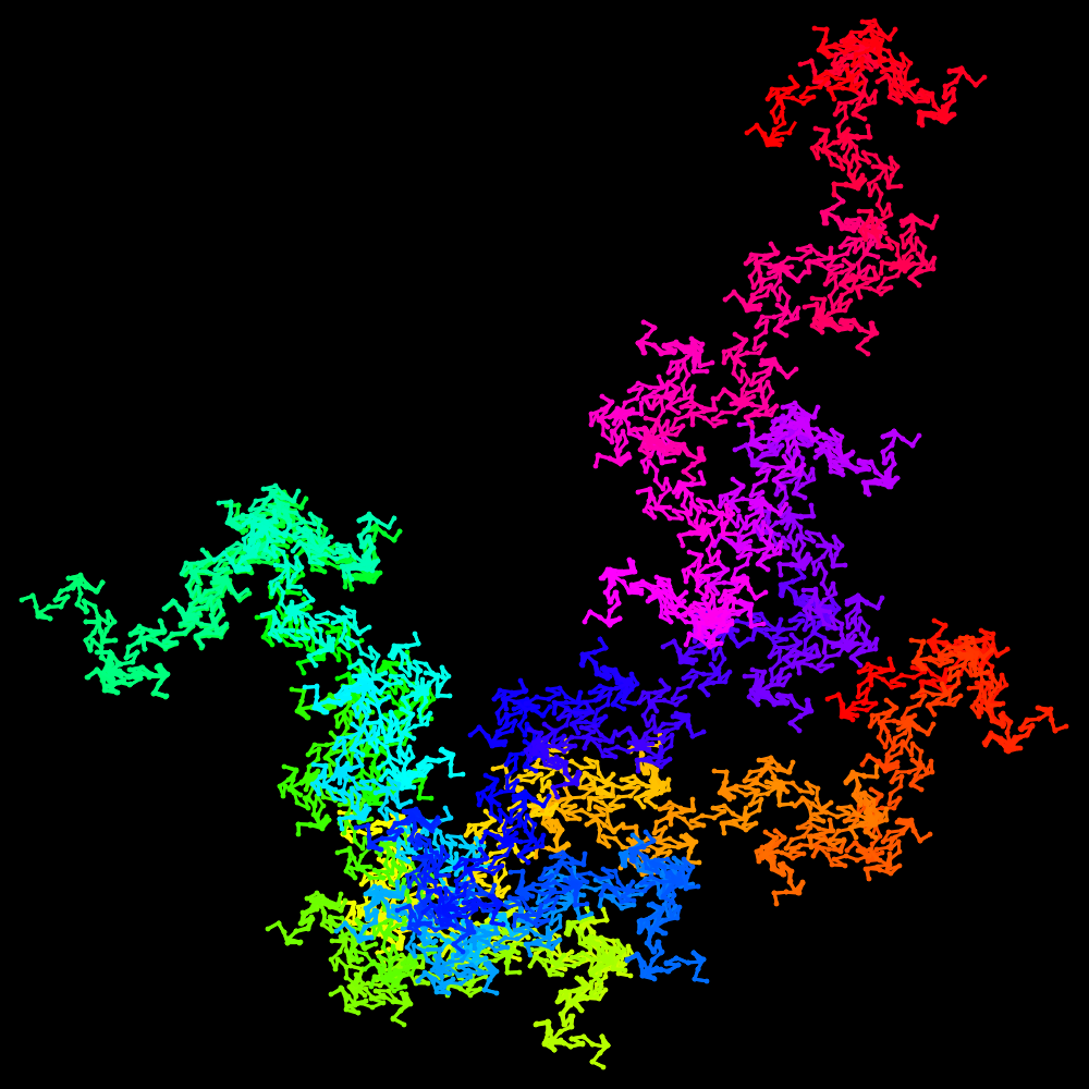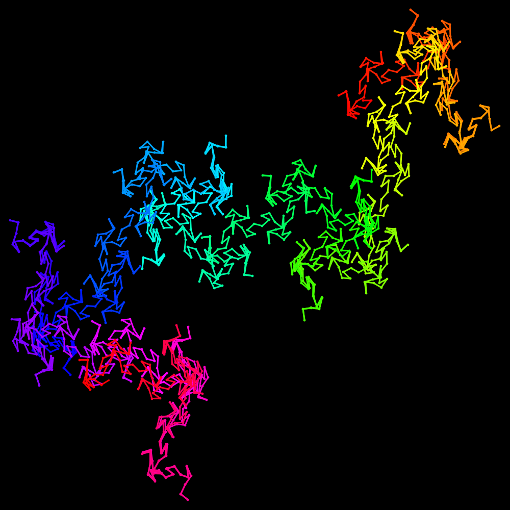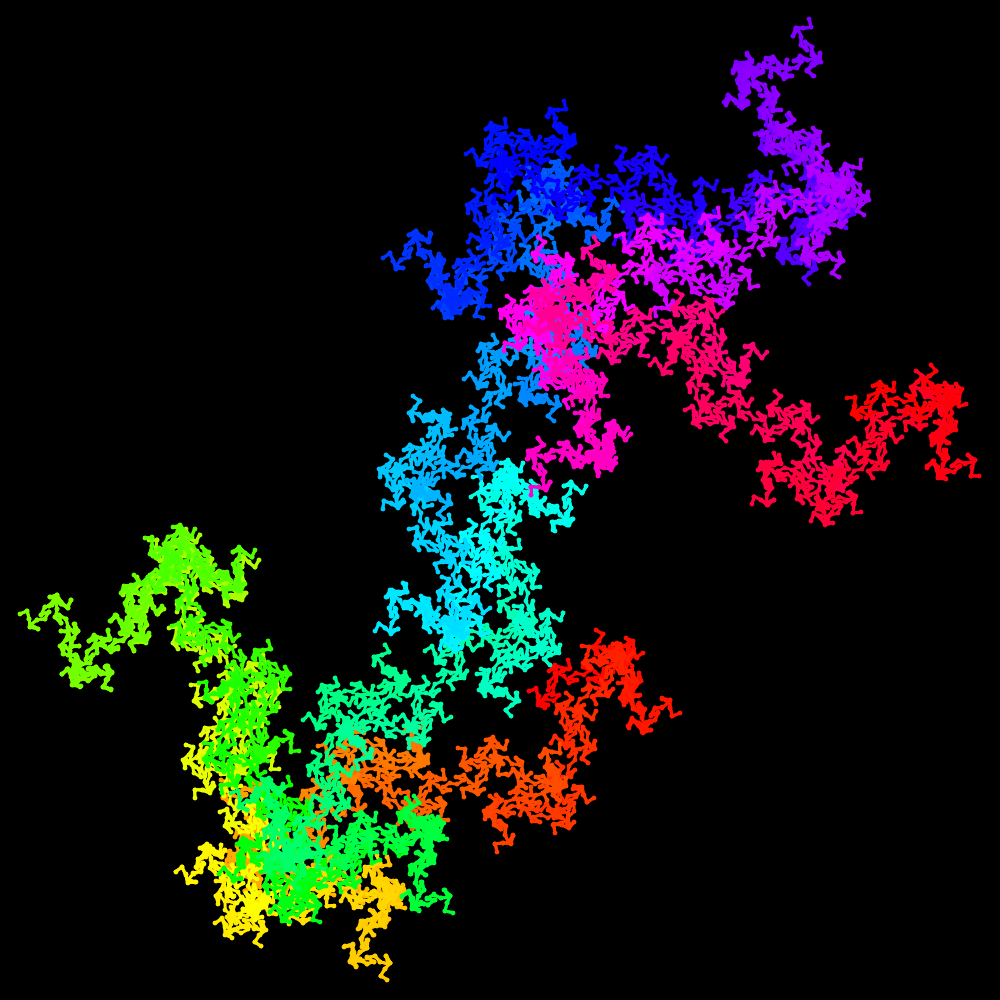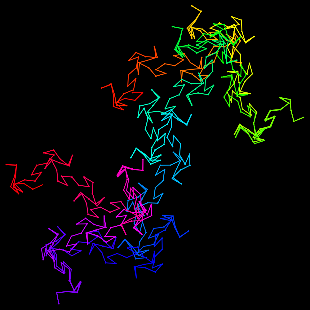 We see pictures of the golden curlicues. This is the random walk in the complex plane, where the individual steps are exp(2Pi i a k2), where a is the golden ratio. This has relations with the golden graph on a formal level because the infinite sum for a in the upper half plane can be written as a Birkhoff sum.The general curlicue problem deals with the case exp(i a k + i b k2), where a,b are real numbers. It includes the problem to drive in the desert as follows: look up the big hand of your watch, drive in that direction for a specific fixed time T then look up the direction of the big hand, then drive in that direction for time T, then look up the big hand again, drive in that direction etc. The following pictures show how your path can look like when driving for longer and longer time.
