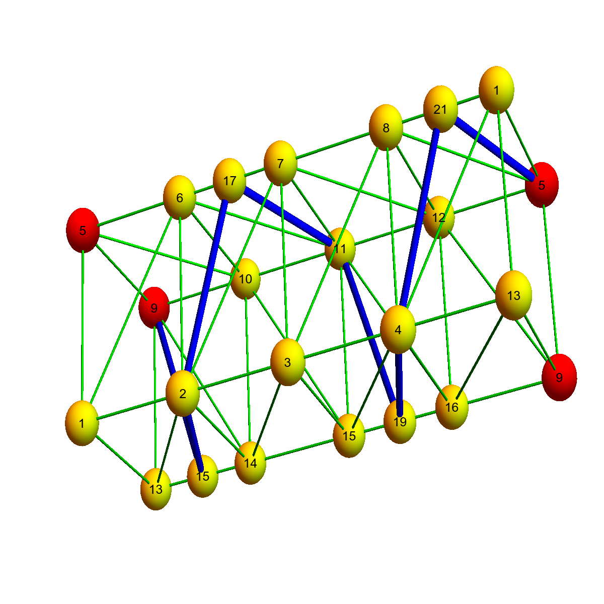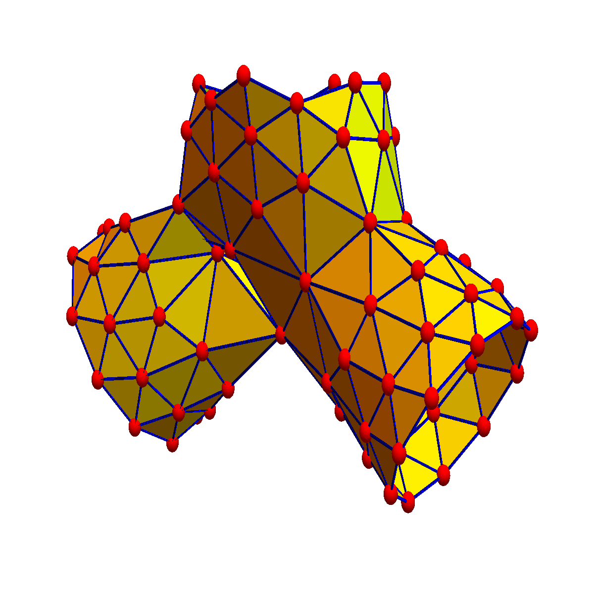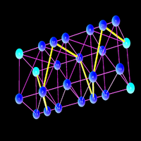 Its dual is the tesseract. It can be colored with 4 colors which is the minimal number of colors for three dimensional spheres. We believe that any 3-sphere can be colored with 4 or 5 colors. |