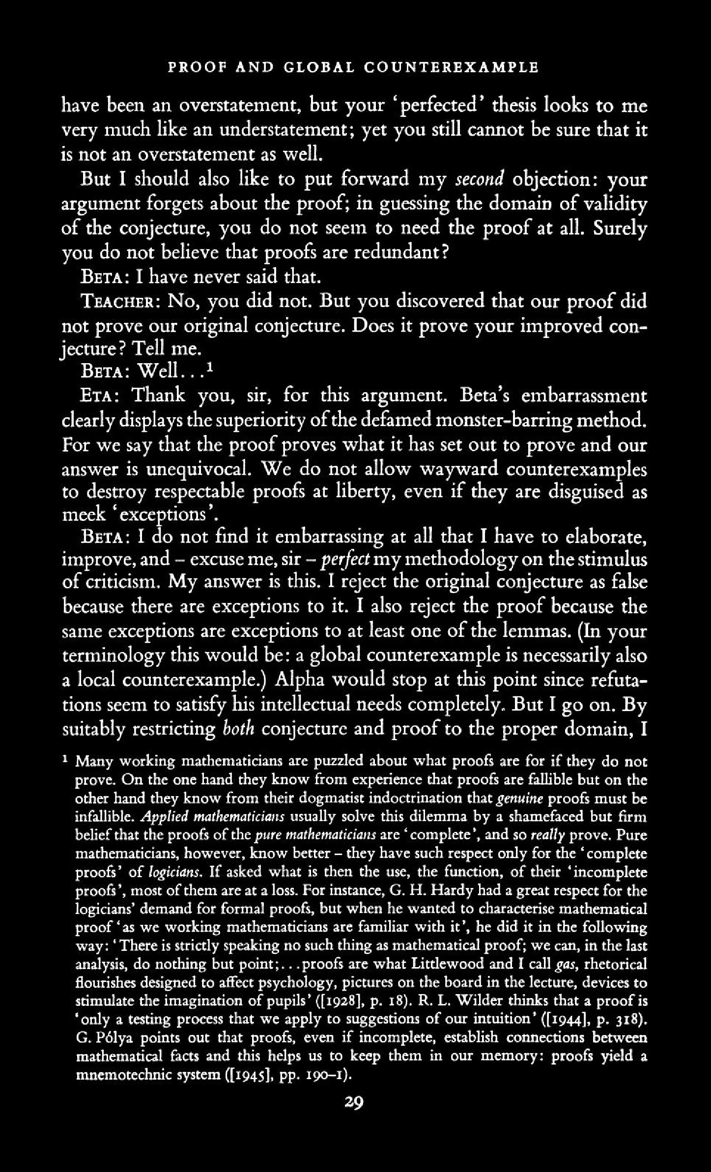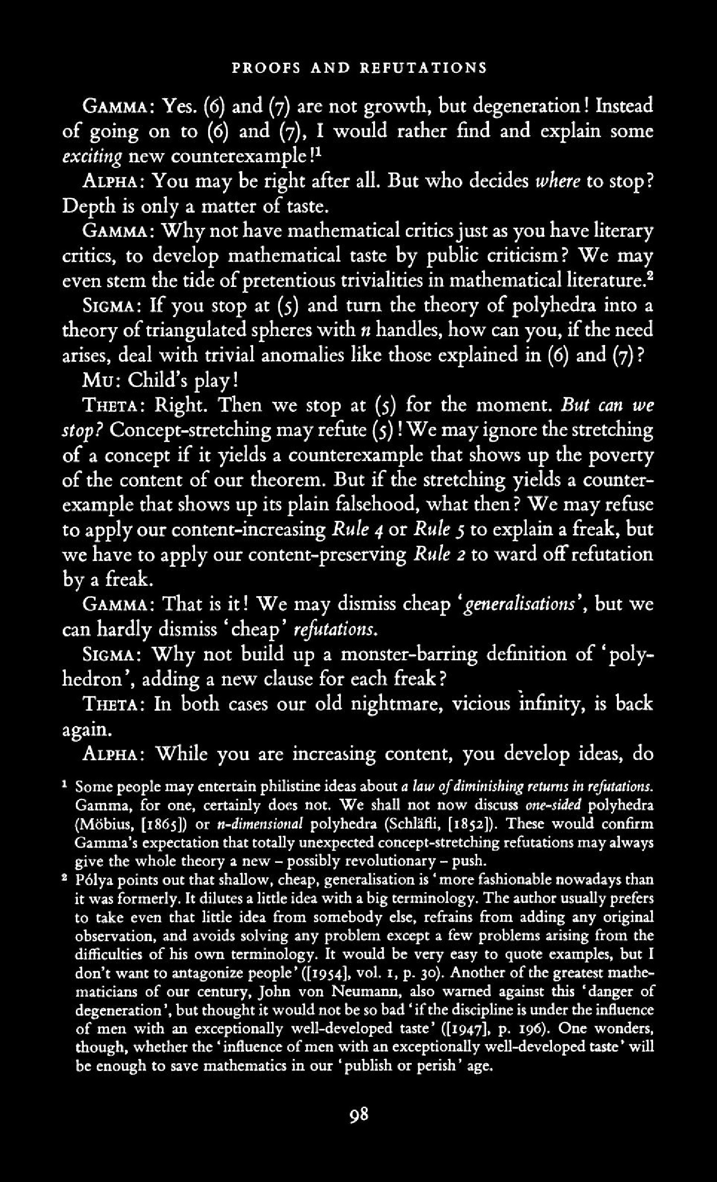 from Imre Lakatos: Proofs and Refutations, The Logic of Mathematical Disovery