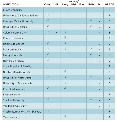 Of course, this ignorance is of more than academic interest; in a rapidly changing world, it also puts us at a serious competitive disadvantage. When done well, a strong general education introduces students to a wide range of subjects in order to whet their appetite for more advanced and specialized work. At a time when policymakers clamor for increased student participation in math and science, the failure of our colleges and universities to insist on exposure in these areas inevitably undermines any efforts to draw more students to these essential subjects." |