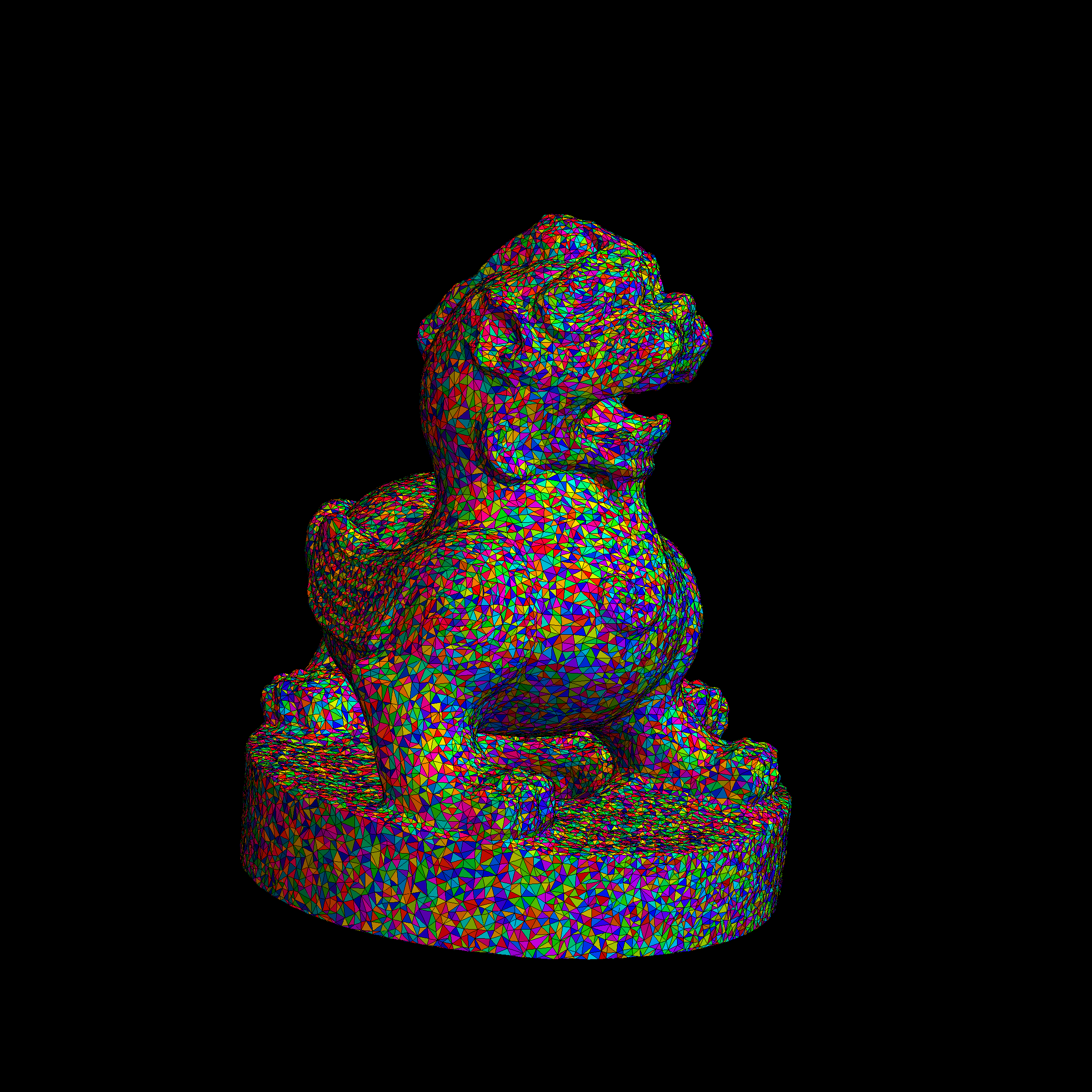 cleaned up a bit with meshlab, then imported into Mathematica: here are the 3D files: Chimera PLY| Texture 1 JPG| Texture 2 JPG| Texture 3 JPG | ZIP file with OBJ, MTL and Textures| Chimera STL (for 3D printing)| Preview the STL file using WebGL| In Shapeways. The Chimera was used as a tomb guardian in China. It rested on top of a tall pillar leading to the tomb of a member of one of the ruling families at Nanjing. It was created during the years 475-524 and is so 1500 years old. Update: January 14, 2016: First the picture from the museum, then a printout from Shapeways and finally a much simplified mesh colored: click for a larger picture.