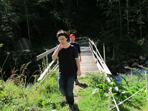 | Fondue im Salmenfee (ein im Jahr 1864 gebautes Chalet), Wanderung im Baltschiedertal (Teil vom Welterbe Schweiz), Rast im Hotel Bahnhof in Ausserberg und Wanderung nach Baltschieder. Bilder vom 12-16. August, 2014. (Klicken auf ein Bild gibt ein grösseres Bild.) | Fondue in Salmenfee (a chalet built in 1864), walk into the Baltschiedertal (part of World heritage), rest in Hotel Bahnhof and decent to Baltschieder. Images: August 12-16, 2014. (Click on picture for larger image.) |