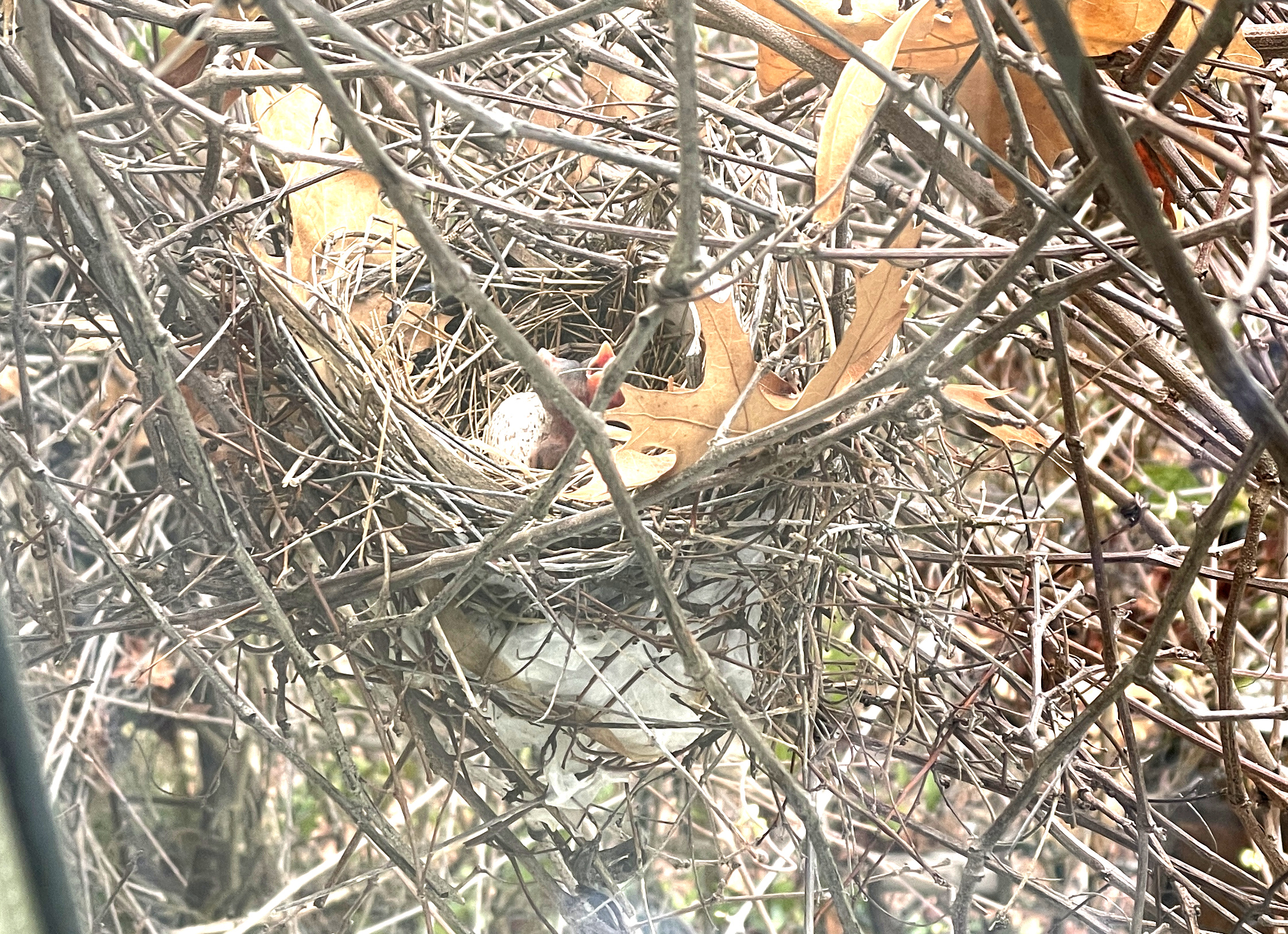 We caught it on tape. The nest is now empty. There was one tiny egg inside the now empty nest