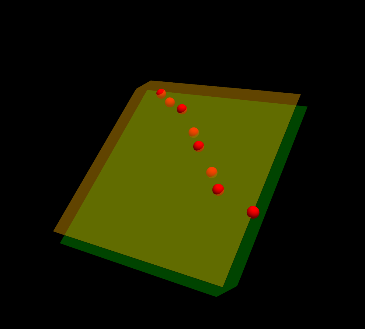 From the first 100 data points 45 are on the set S = { (x-2y+z)2=4 }