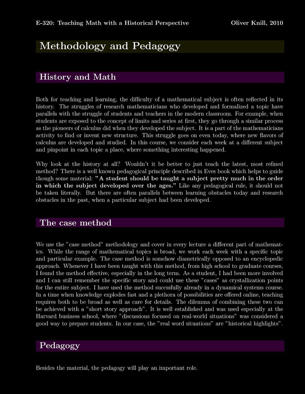 Math E320| Oliver Knill | Spring 2010 | Extension School | Harvard University