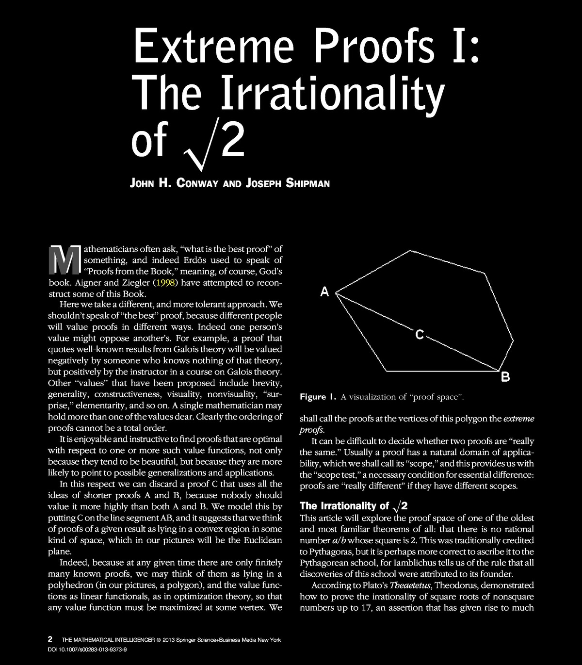 amusical sequence or the game of Life). We will look at irrationality proofs
