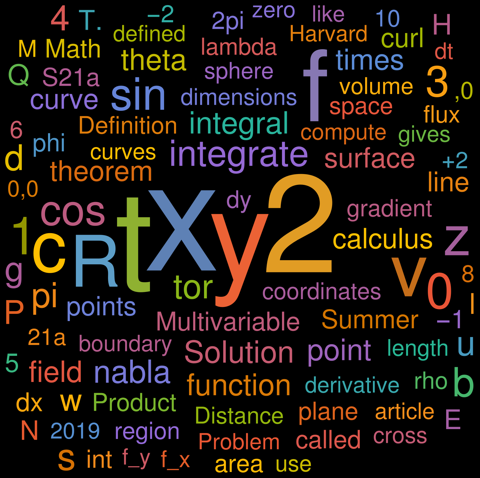 Here is a word cloud based on the current lecture notes in this course. It is an example on how we can use spacial dimensions to visualize information.