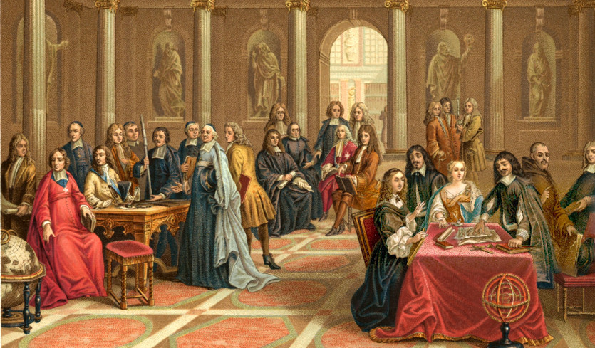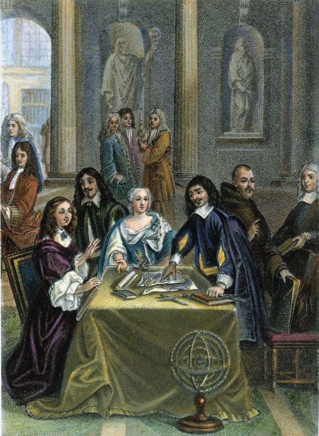 A famous picture of Pierre-Louis Dumesnil (1698-1781) repainted by Nils Forsberg in 1884 shows Descartes teaching geometry and Astronomy to Queen Christina of Sweden (1626-1689). He had to teach three times a week at 5AM. Being used to rise at 11am before, it was not long until he caught pneumonia and died in 1650.
