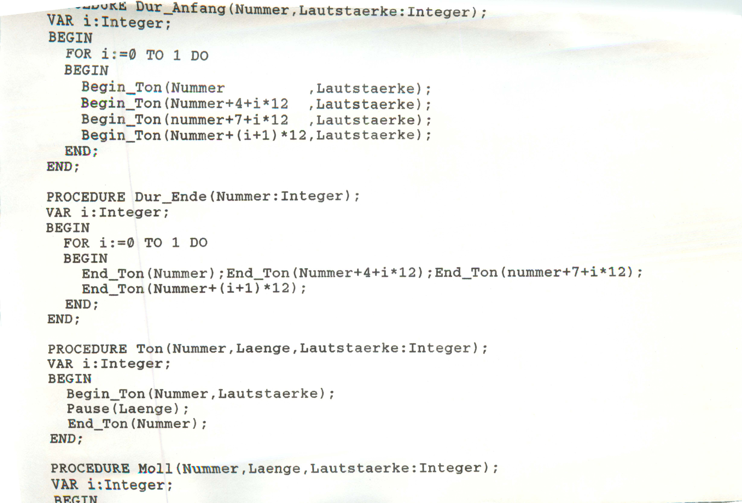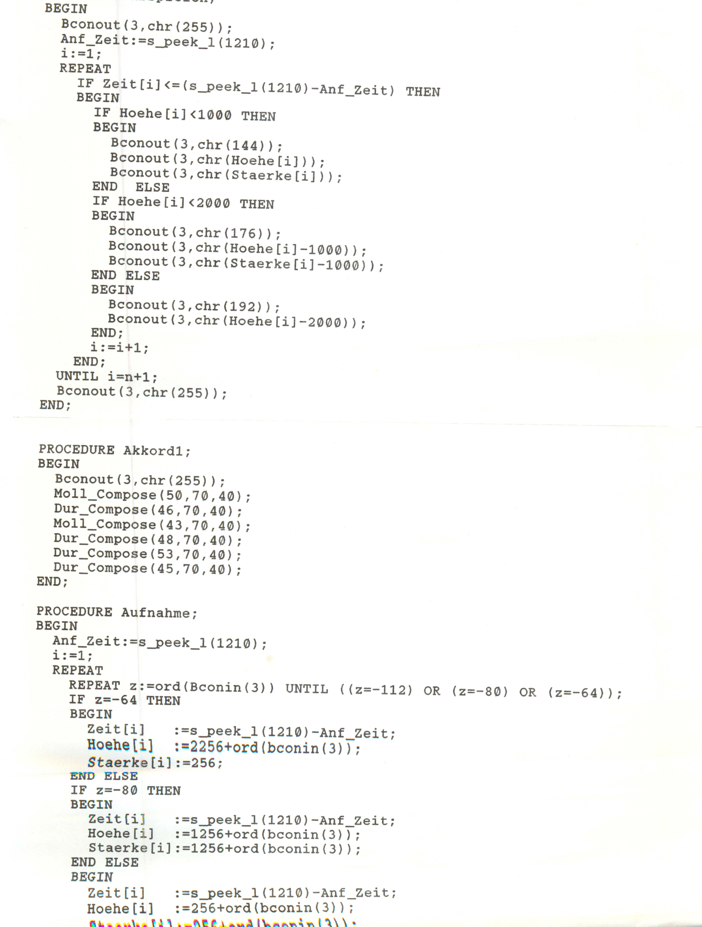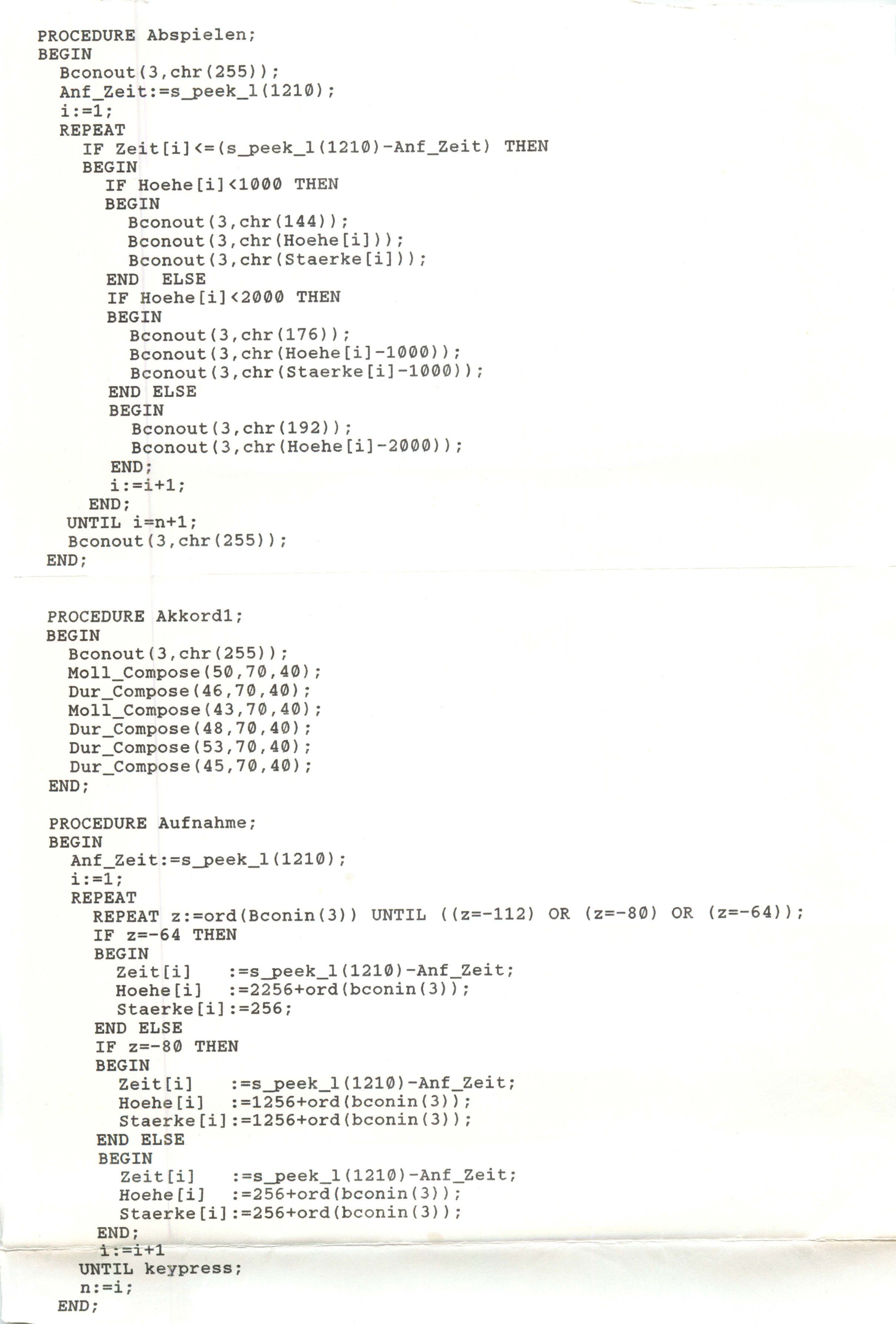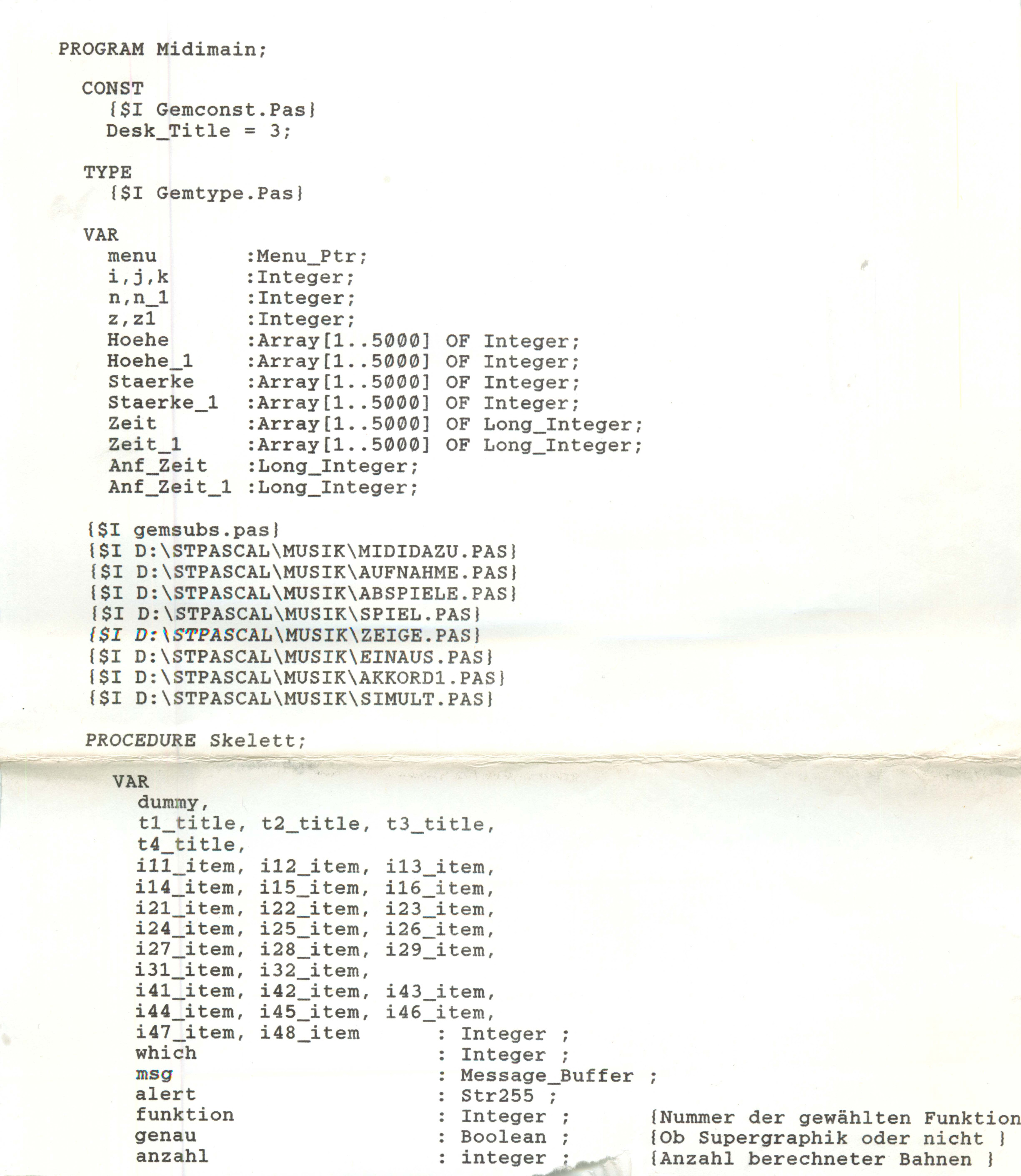 Here is the pascal printout of the Pascal program for the Atari, written around 1986 or 1987
