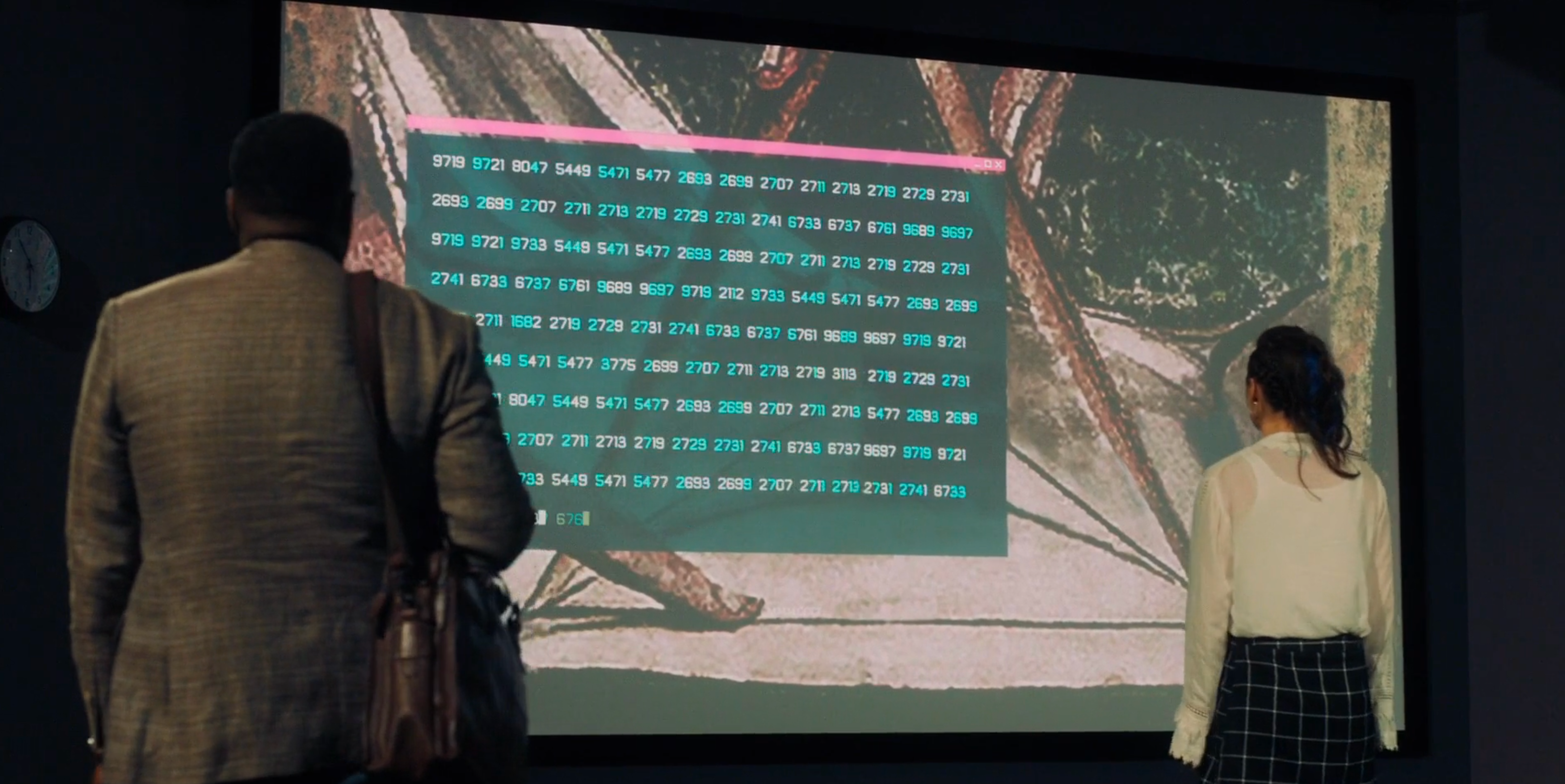 then some cryptology (Ceasar cypher and steganography) and finally a scene with prime numbers.