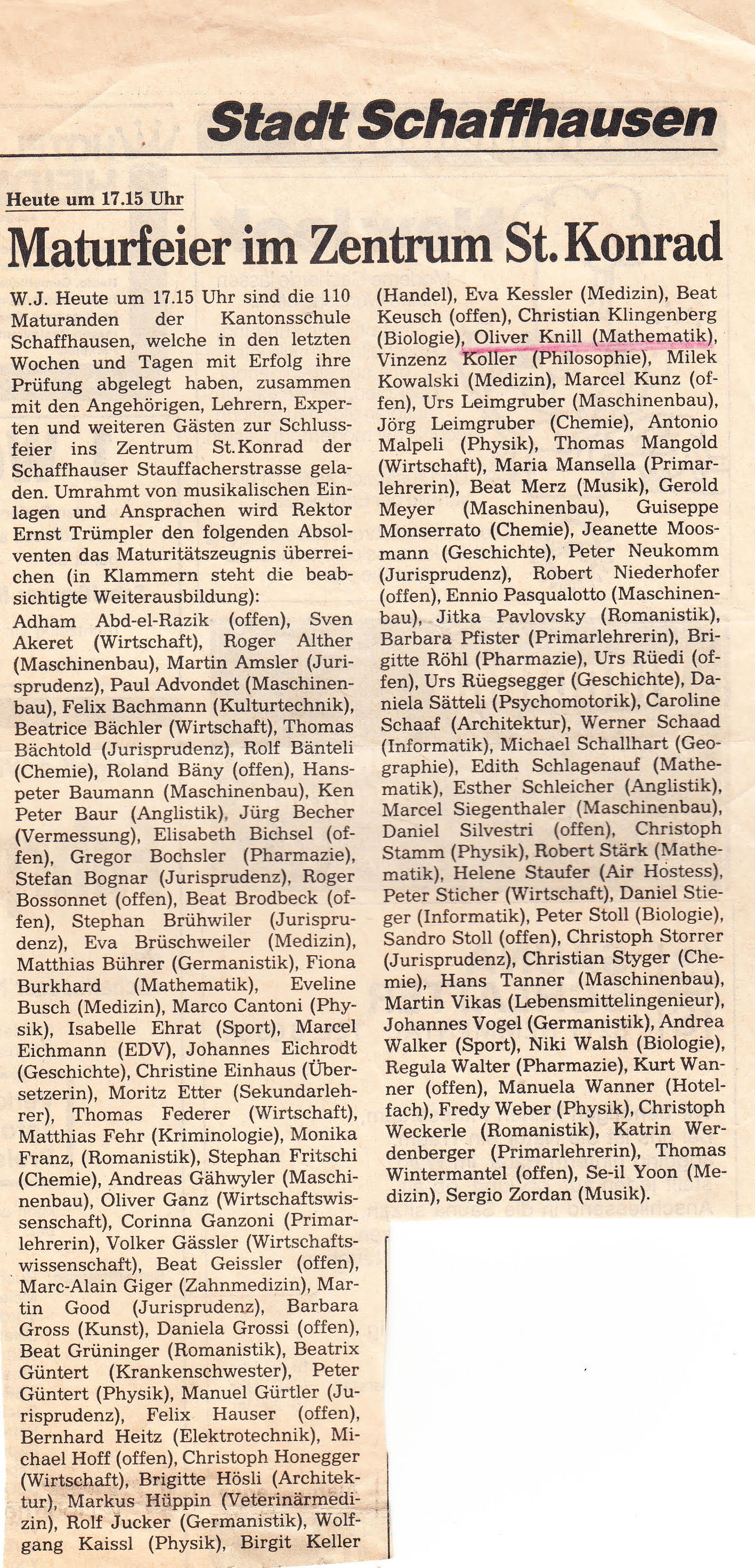Schaffhauser Nachrichten about graduation.