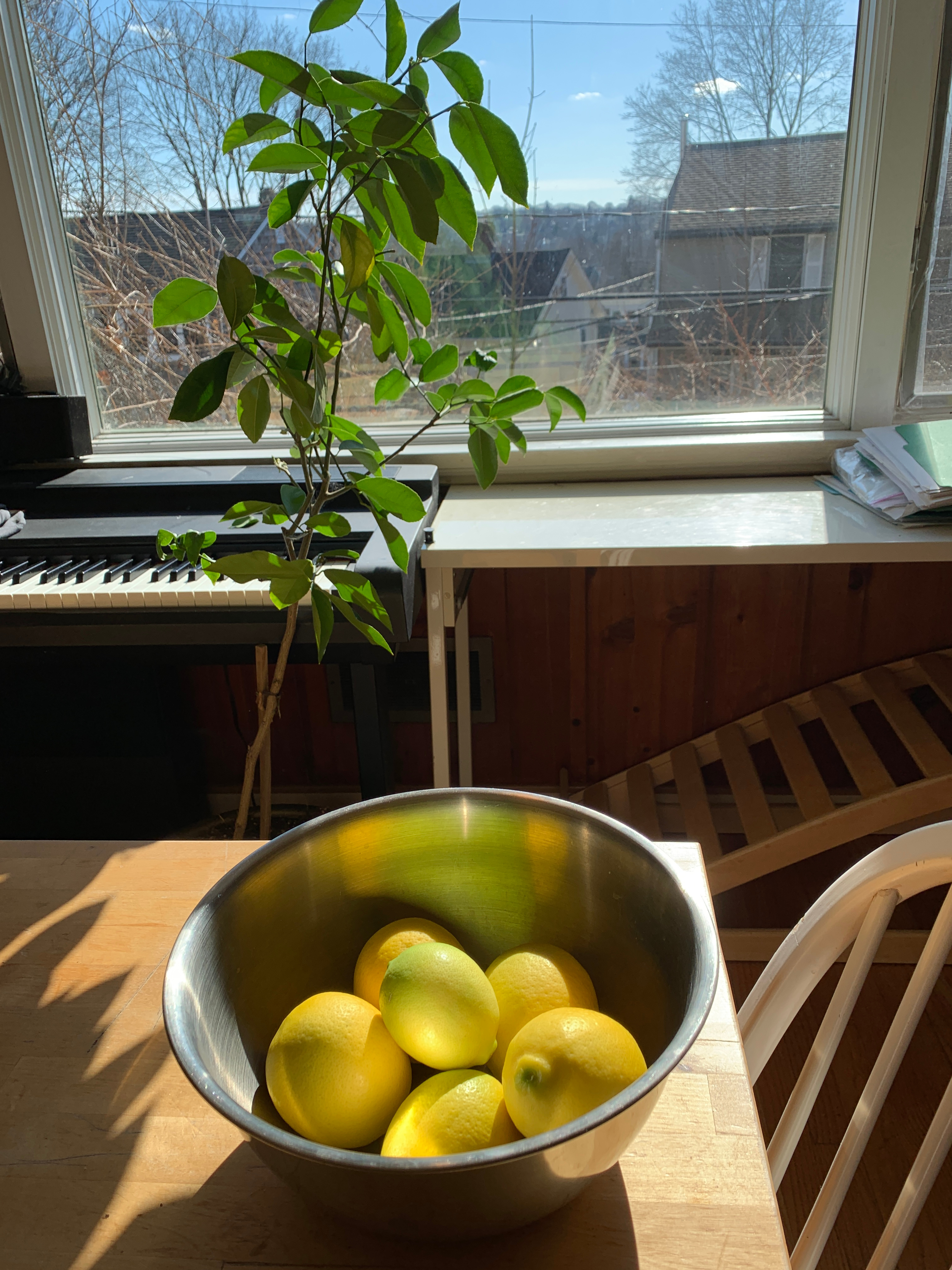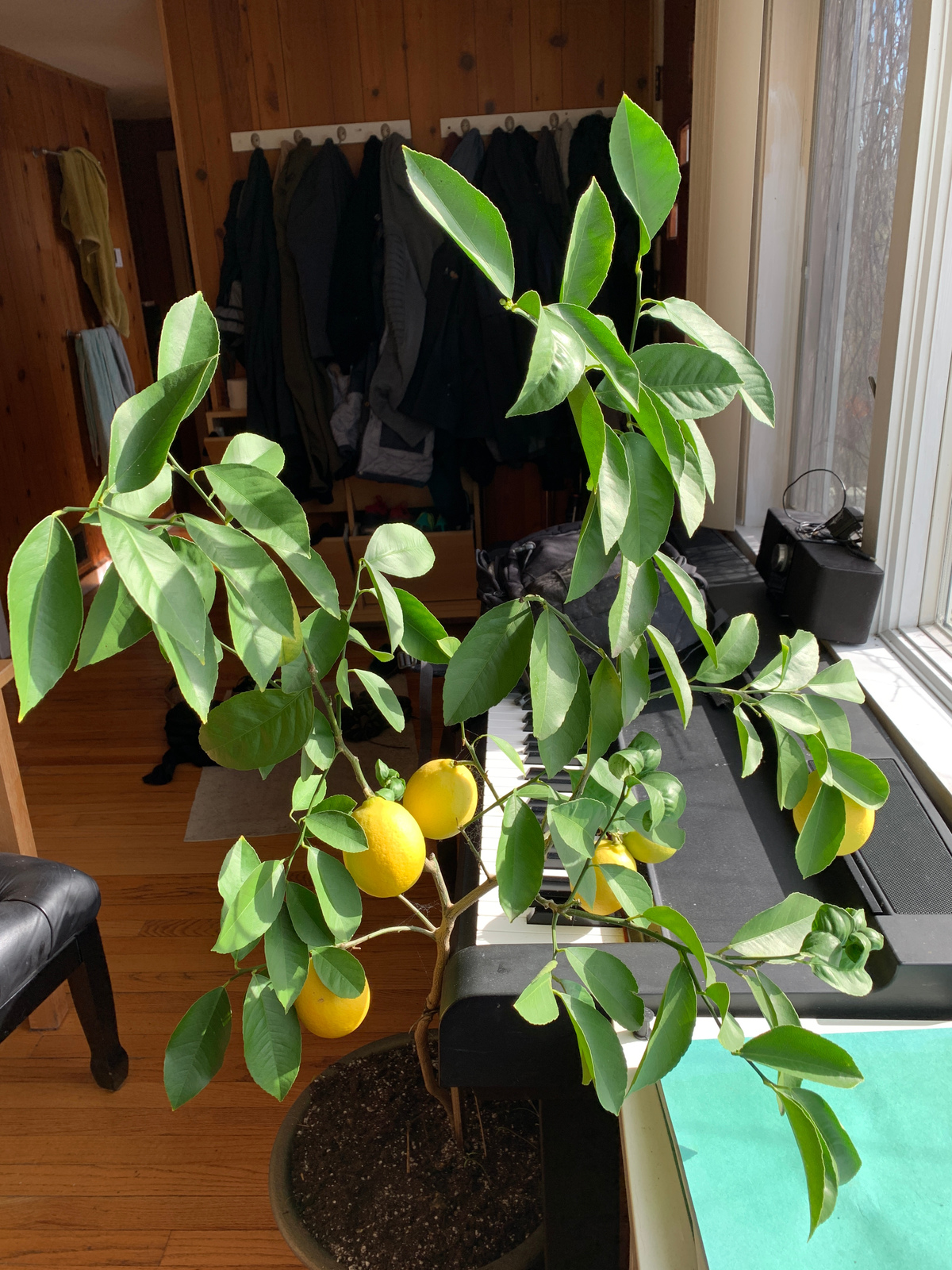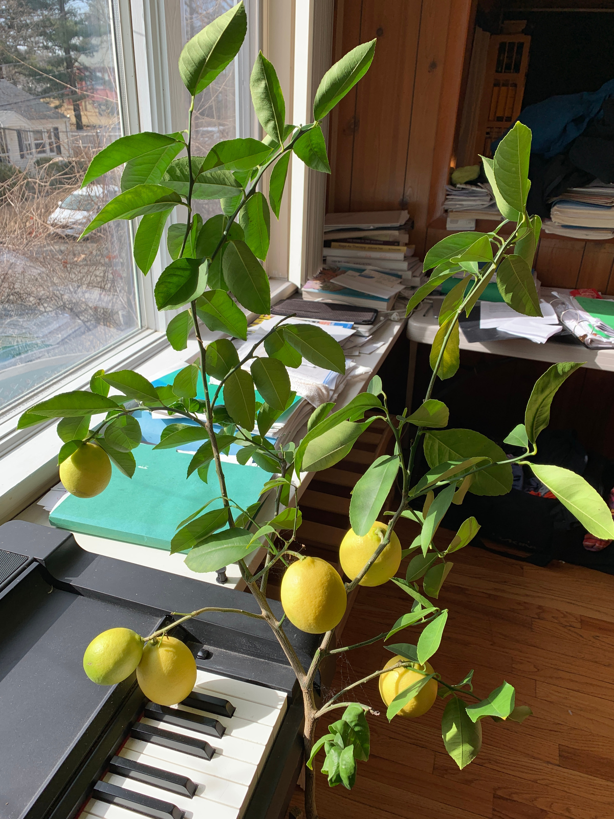 Our lemon tree produced some wonderful fruits. As there are no bees inside the house, we have have done it with some toothbrush ... So much about lemon tree sex. Click for a larger picture.