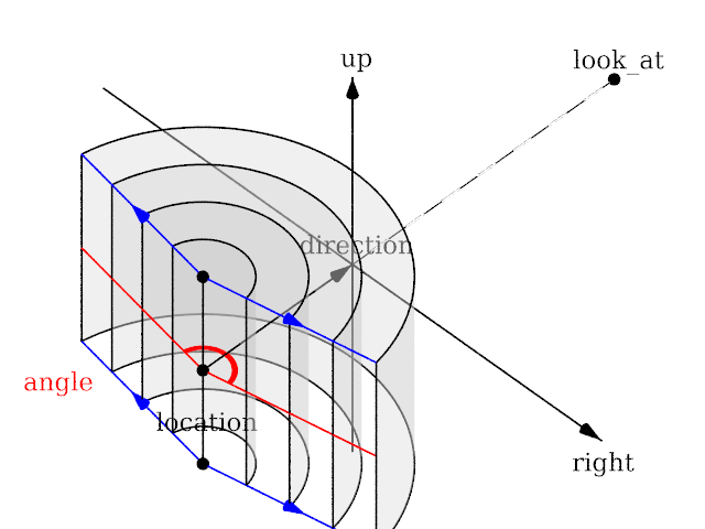 This section details settings, camera types, objects, and textures used in POV-Ray scene files. It is divided into the following sub-sections: