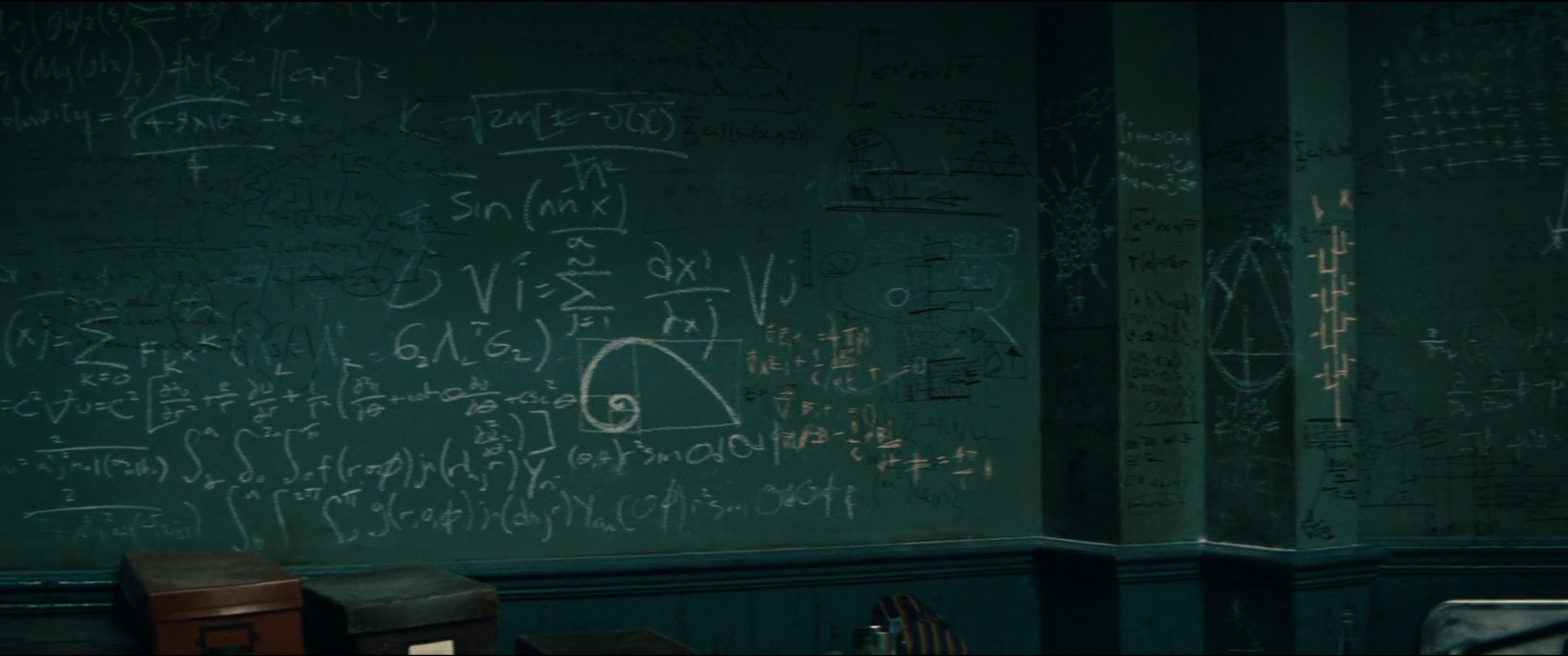 visit Anthony Hopkins, a mad scientist. We can see lots formula like the Maxwell equations
