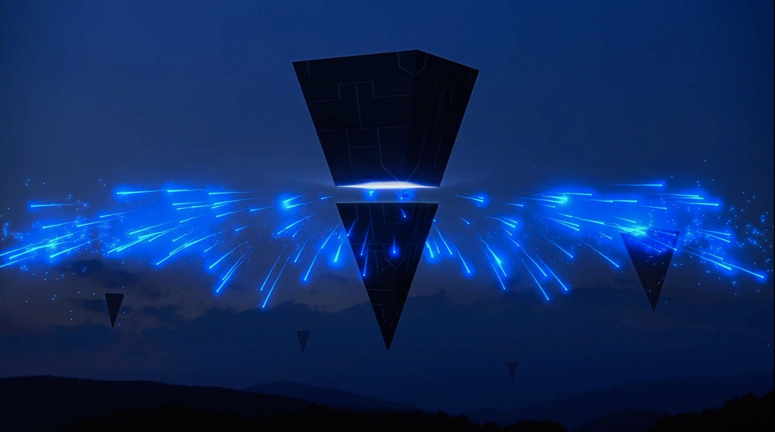 merged like people and plants, where a giant inverted pyramid floats in the sky