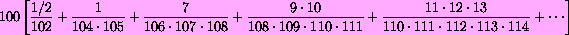 ford: A PostScript file that recursively draws Ford circles: a system of non-overlapping circles each tangent to infinitely many others and to a given line. (The line and Ford circles are in black; see below for the blue semicircles.) You can inspect the Postscript file to see that I'm actually recursing rather than getting the circles from a formula (see below) or list. Suitable arcs on these circles are used as contours of integration in obtaining Rademacher's series for the partition function and related formulas. If the line segment is identified with the interval [0,1], the circles are tangent to the segment at the Farey fractions m/n and have diameters 1/n2. The blue semicircles are orthogonal to the Ford circles at their points of tangency. If we identify the right half-plane with the Poincaré model of the hyperbolic plane, the blue semicircles become hyperbolic lines, and the Ford circles are horocycles.