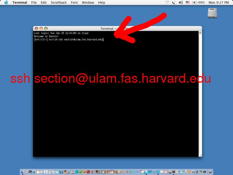 type "ssh section@ulam.fas.harvard.edu" into the window.
