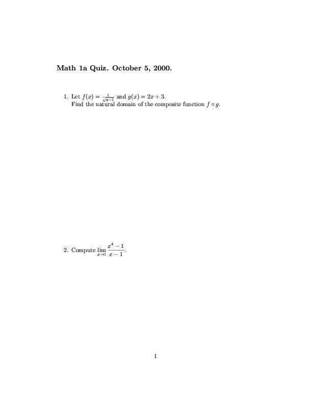 Math 1a - Quiz on October 5, 2000, Section of Kim Froyshov