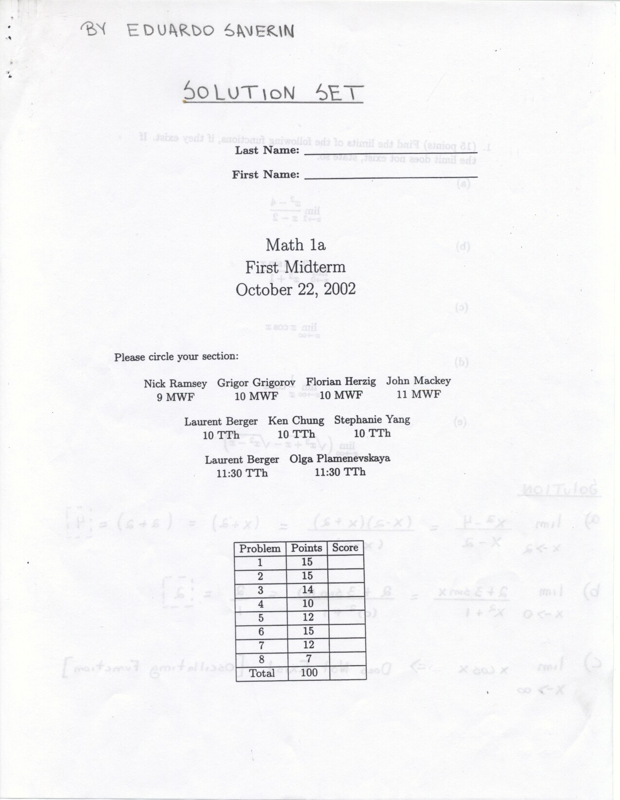 Mathematics 1aIntroduction to CalculusCourse Head: Robin Gottlieb Head CA: Andrei Boros