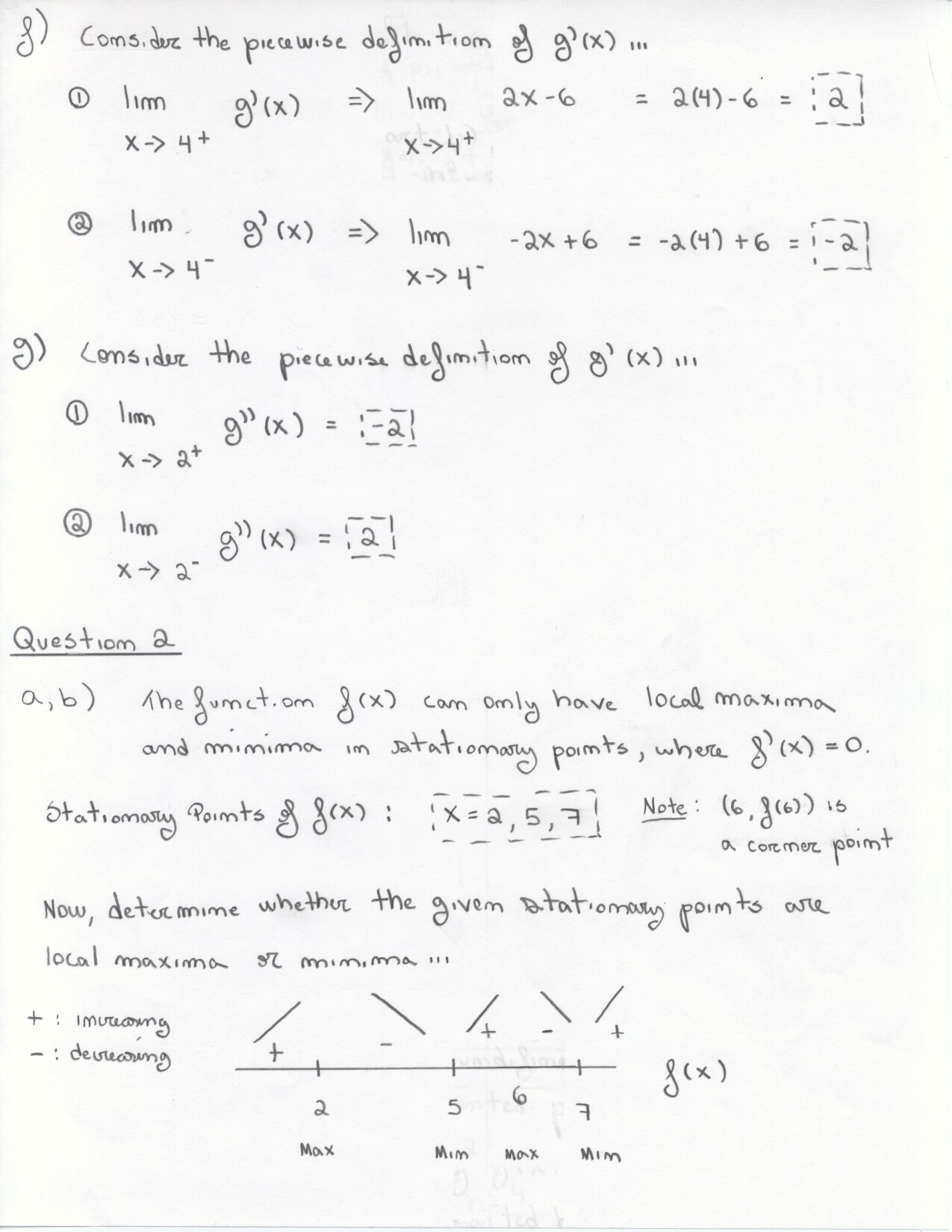 2. Graph f(x) = x + sin x on [-2pi, 2pi] using information from f' and f''. |