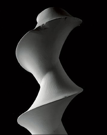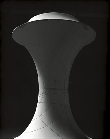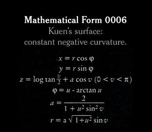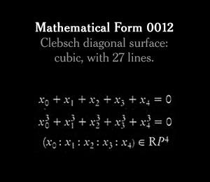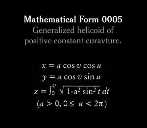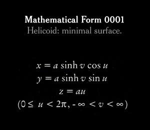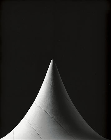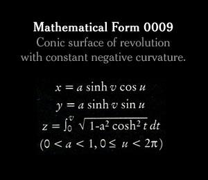 Citation NYT: "It's hard to imagine that these plaster forms, so starkly beautiful, were originally used to teach advanced students trigonometry. Called stereometric models, they were manufactured in turn-of-the-century Germany to help scholars grasp complex mathematical formulas. Last year, the Japanese photographer Hiroshi Sugimoto shot each object, the tallest of which is less than a foot high, from below at close range so that they appear monumental. His series of photographs, 'Mathematical Forms', reimagine these scientific models as things of wonder. They embody Sugimoto's belief that art is possible even without artistic intention."