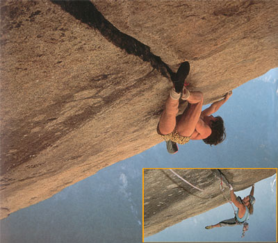 Separate Reality 7b, is a climbin route in Yosemite. You see Martial Dumas filmed by Didier Chenevoy. Wolfgang Güllich was the first to climb this route without ropes.