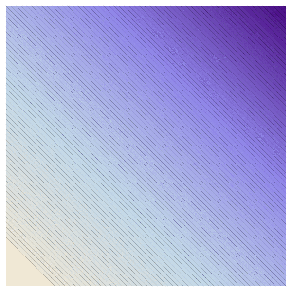 g(x,y) = x^3+ y^3 - 3 x ywhich has two critical points, a minimum (1,1) and a saddle point at (0,0). He then looked at the function f(x,y) = g(x,ey. The picture to the left shows the level curves of the function g(x,y). Replacing y with ey has the effect that the saddle point of g(x,y) is "pushed" to infinity. |