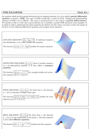 Partial differential equations A short overview over a few partial differential equations. You have to know the Laplace, wave, heat, transport and Burgers equation. |