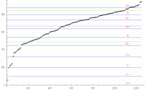 there should be around 40 percent A and A-, the average should be in the B+ range