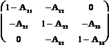 (1-A11)(1-A22)(1-A33) – (1-A11)A23A32 – (1-A33)A12A21 .