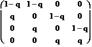 This is to say that the probability of sequence i appearing in an heir is equal to the probability that sequence 1 appears in the parent times the probability of a mutation that changes sequence 1 to sequence i, plus the probability that sequence 2 appears in the parent times the probability of a mutation that changes sequence 2 to sequence i, etc.