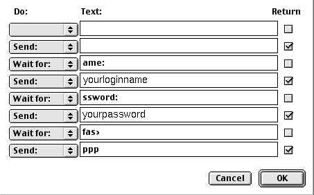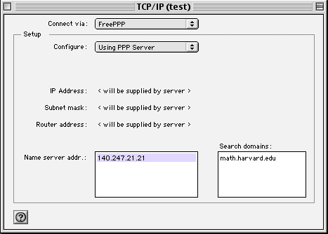 parameters in the Free ppp setup panel and the TCP/IP panel for