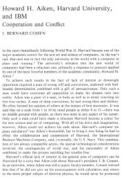 Bernard Cohen: Howard H. Aiken, Harvard University and IBM, Cooperation and Conflictin "Science at Harvard University: historical perspectivesEditors: Clark A. Elliott and Margaret W. Rossiter, Associated University Presses, 1992 |