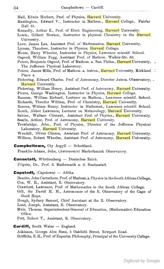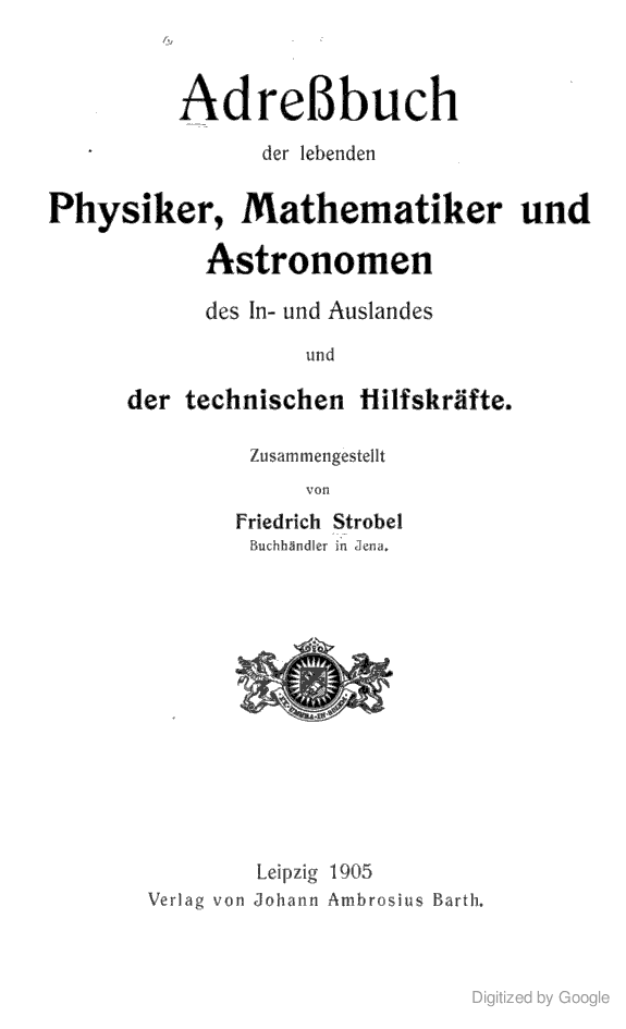 Adressbuch der lebenden Physiker, Mathematiker und Astronomen
