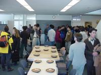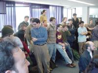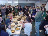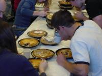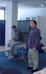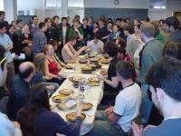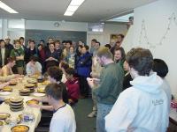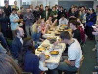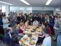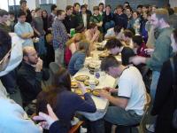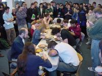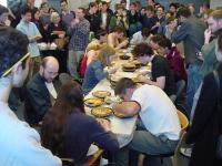 15 second mpg-movie showing John Boller (eating with silverware) and John Francis the winner of the contest (eating without silverware).