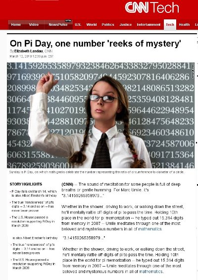 Pi Day is even in the cable news this year. A CNN article honors the event: