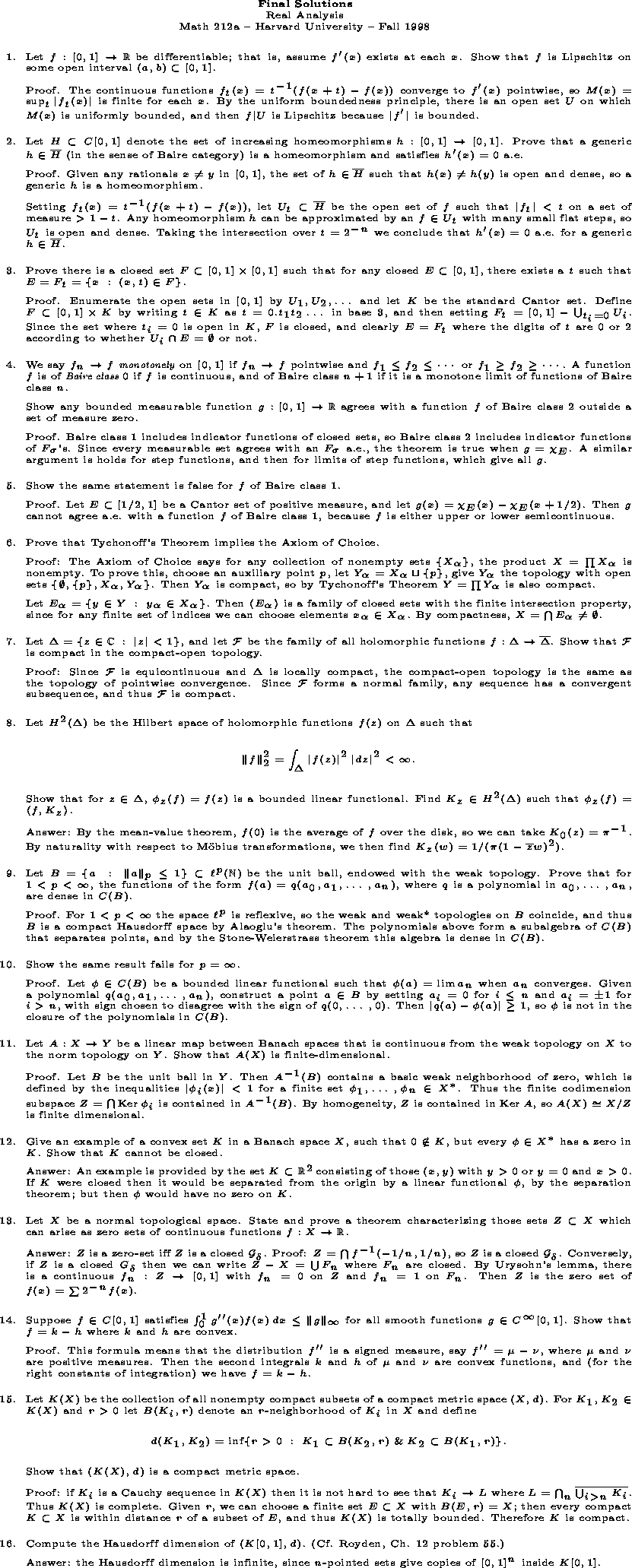 Math 212a - Harvard University - Fall 1998