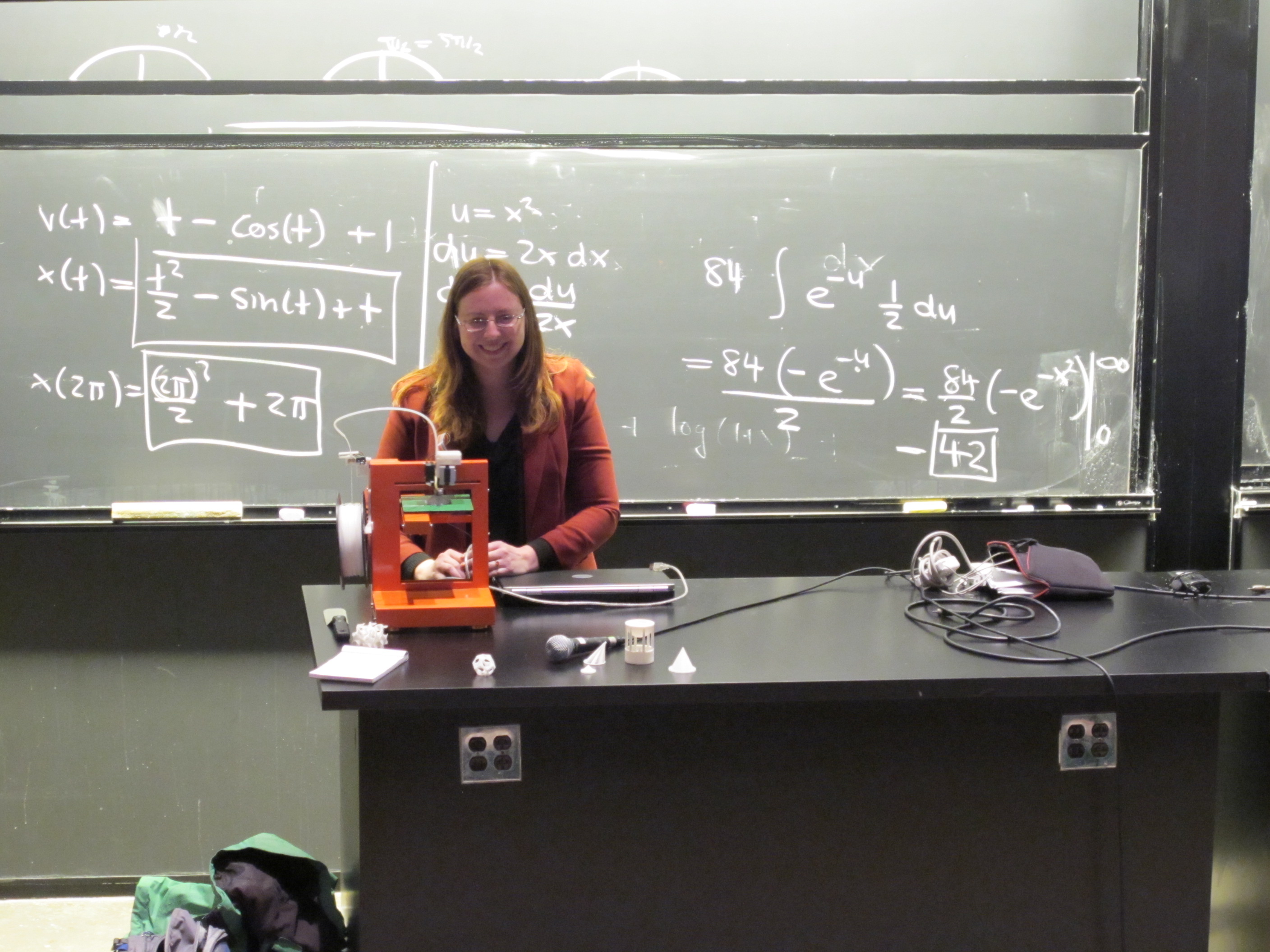 Liz presented the printer during a single variable calculus review lecture. Some movie clips. Here are some photos from May 3, 2012:![]() In Lecture Hall D on May 3, 2012 |