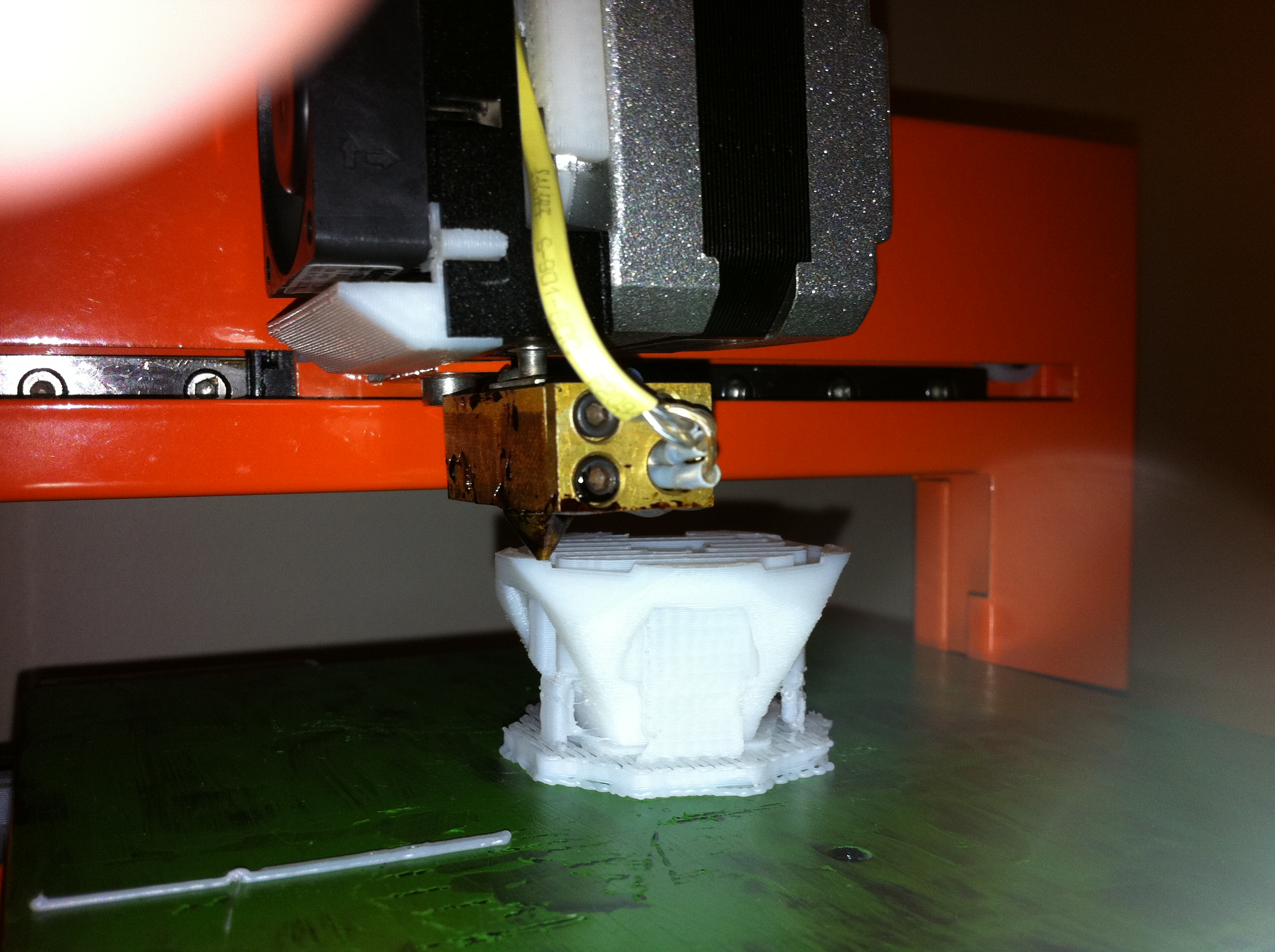Photos below by Elizabeth Slavkovsky: It is an UP! Plus 3D Printer in Juicy Orange by PP3DP bought through [x]object Inc. The package UP! Start Plus included material and tools. About the designs: the Dodecahedron came from here A Sierpinski Tetrahedron came from here |
