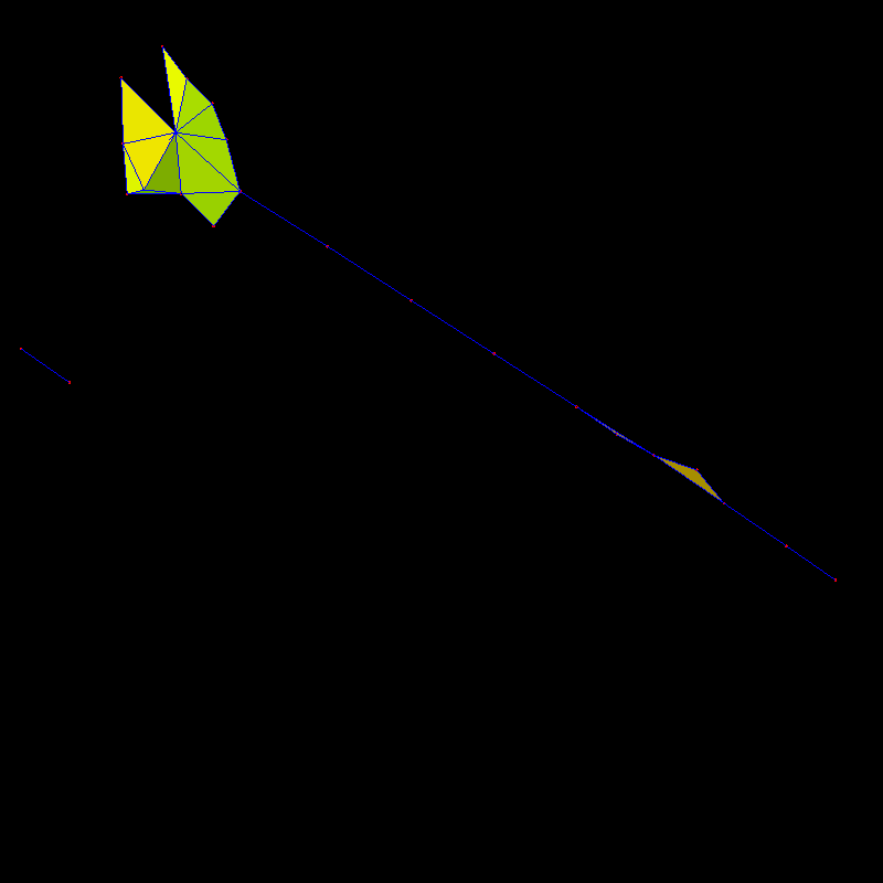 The graph has dimension 1047839931/501781280=2.08824 and Euler characteristic v-e+f-c+w=-5 where v=3141 is the number of vertices,