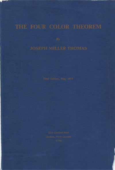 the 4 color theorem, there was also a book by Joseph Miller Thomas