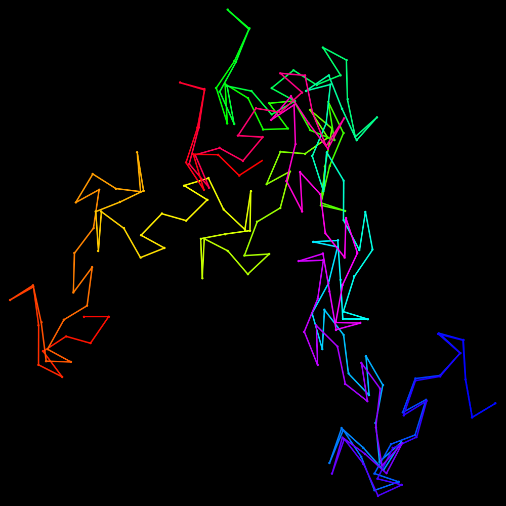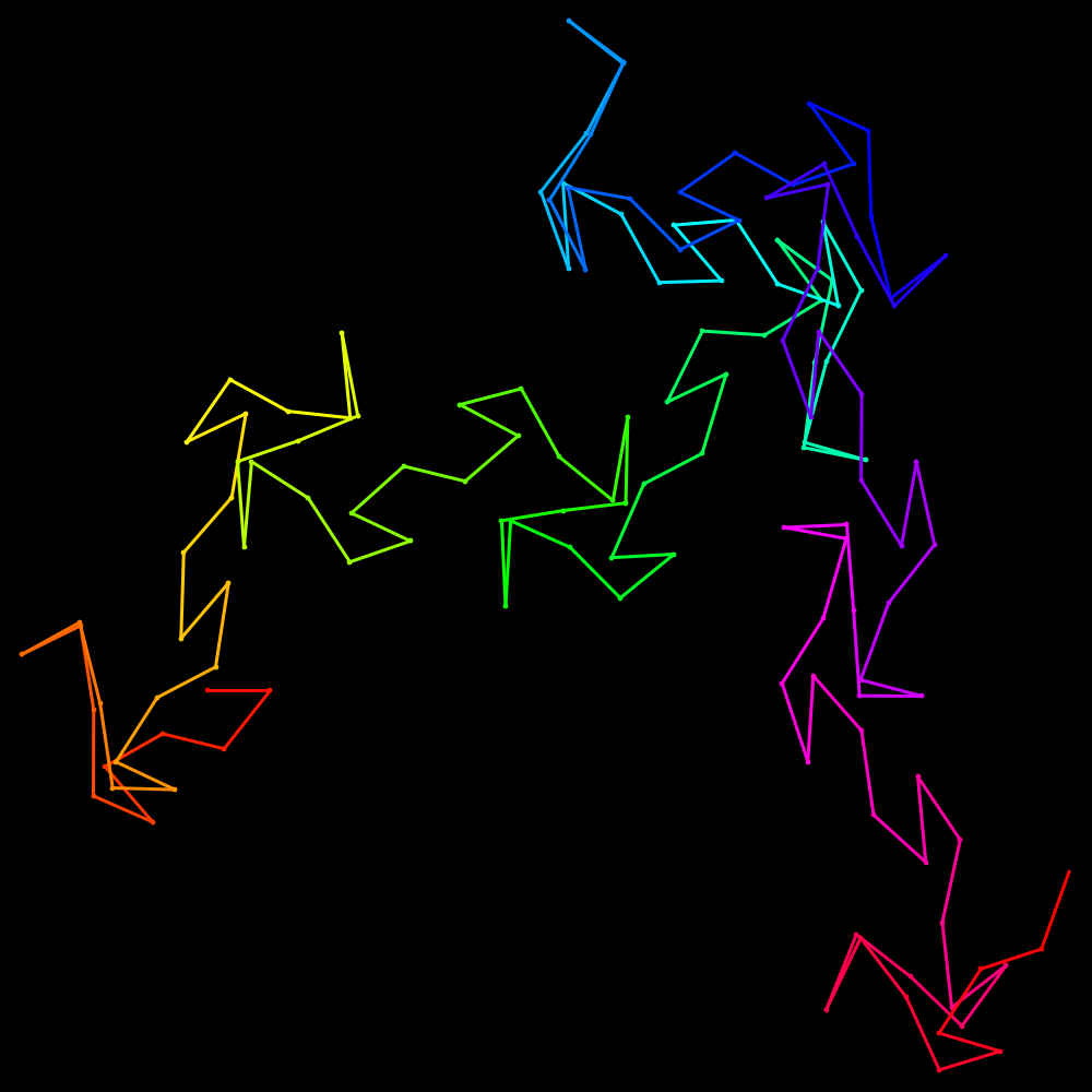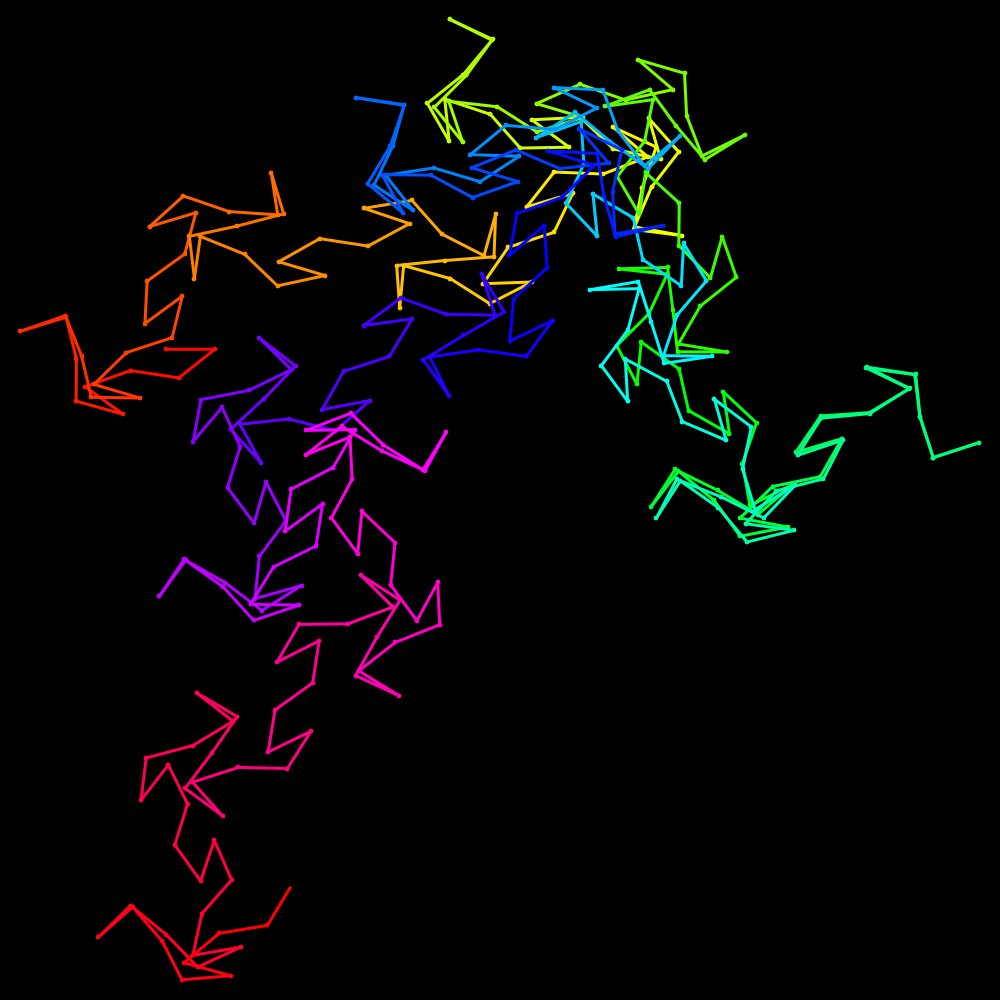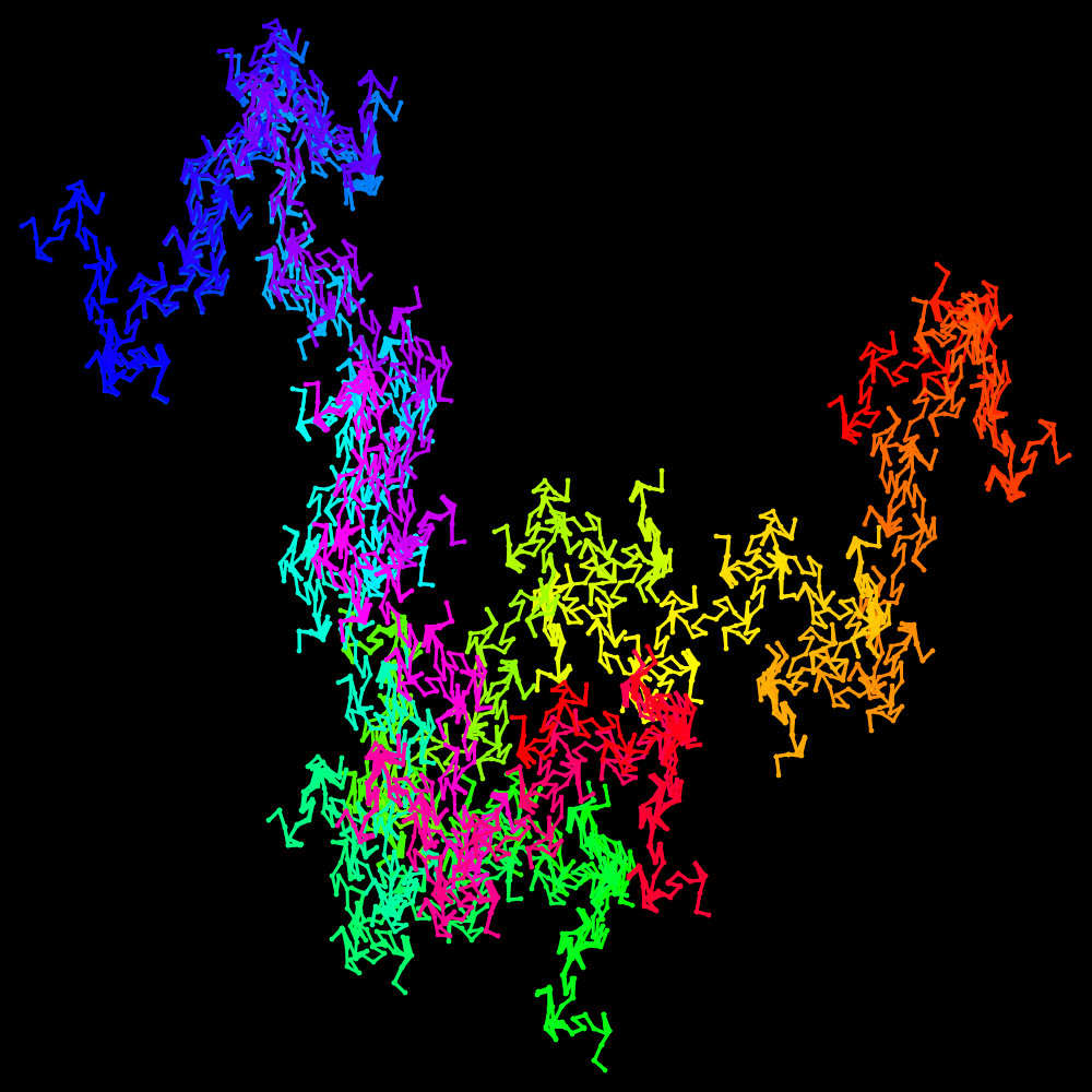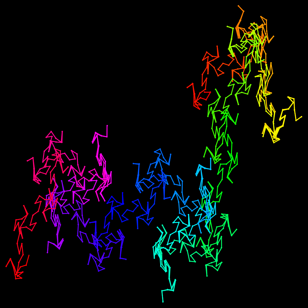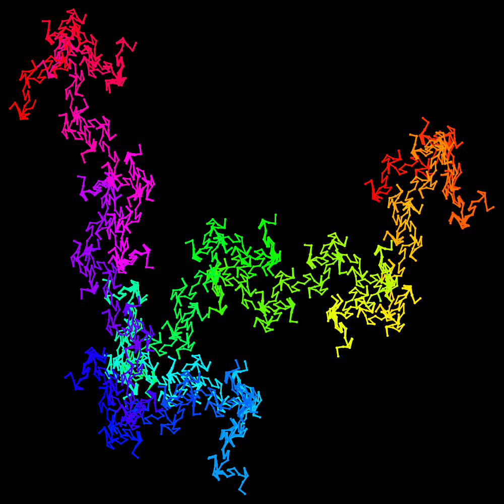 We see pictures of the golden curlicues. This is the random walk in the complex plane, where the individual steps are exp(2Pi i a k2), where a is the golden ratio. This has relations with the golden graph on a formal level because the infinite sum for a in the upper half plane can be written as a Birkhoff sum.The general curlicue problem deals with the case exp(i a k + i b k2), where a,b are real numbers. It includes the problem to drive in the desert as follows: look up the big hand of your watch, drive in that direction for a specific fixed time T then look up the direction of the big hand, then drive in that direction for time T, then look up the big hand again, drive in that direction etc. The following pictures show how your path can look like when driving for longer and longer time.