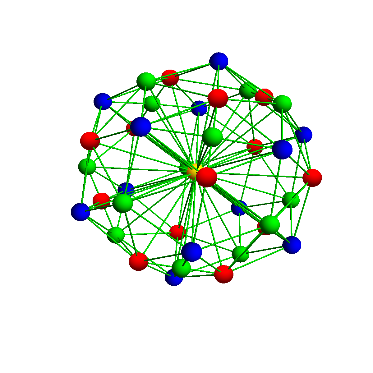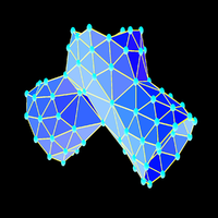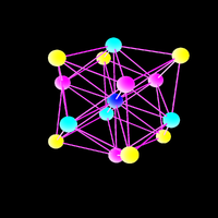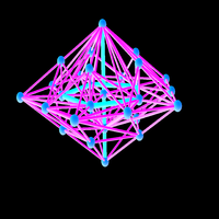 Its dual is the tesseract. It can be colored with 4 colors which is the minimal number of colors for three dimensional spheres. We believe that any 3-sphere can be colored with 4 or 5 colors. |