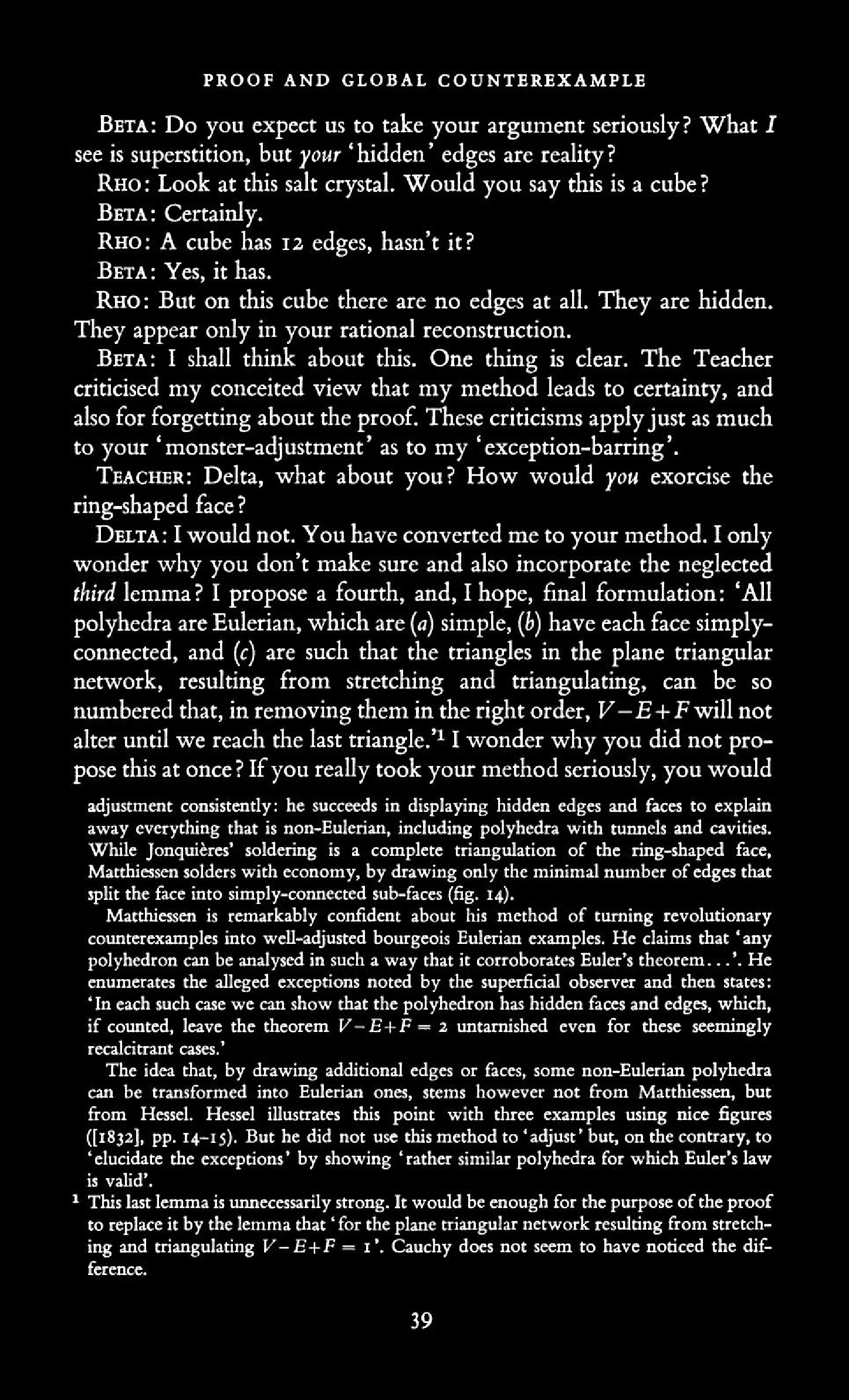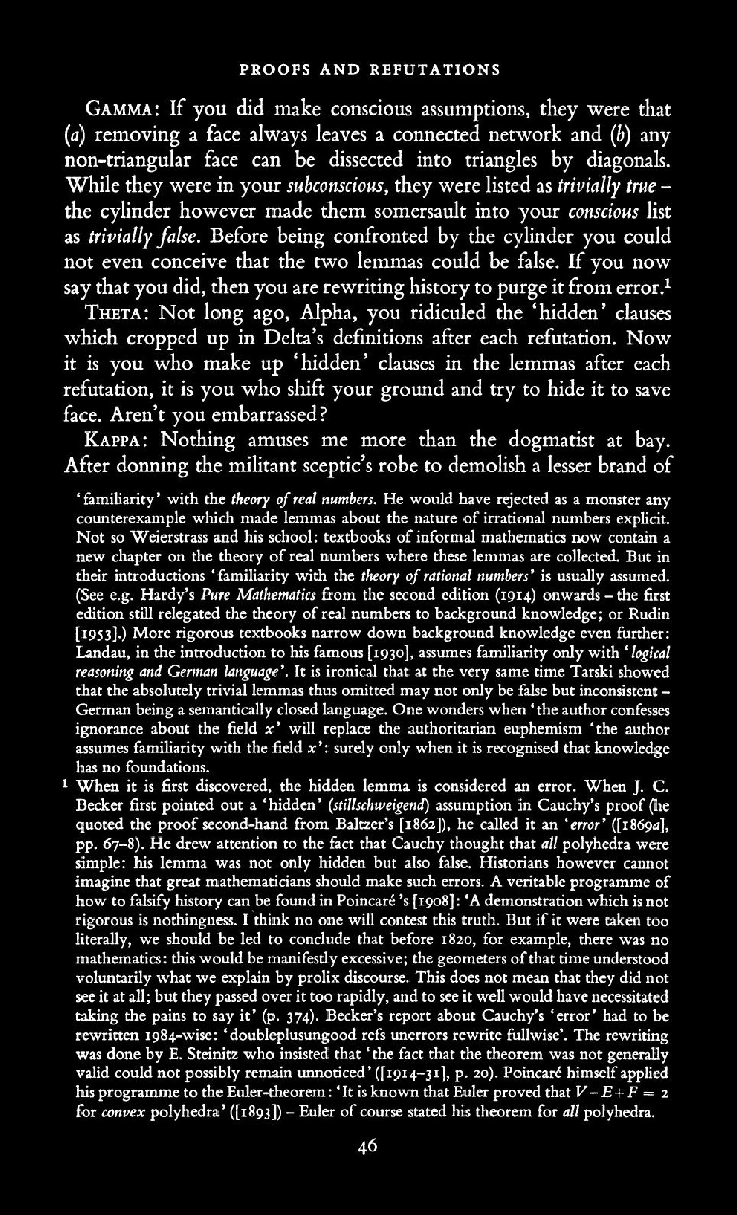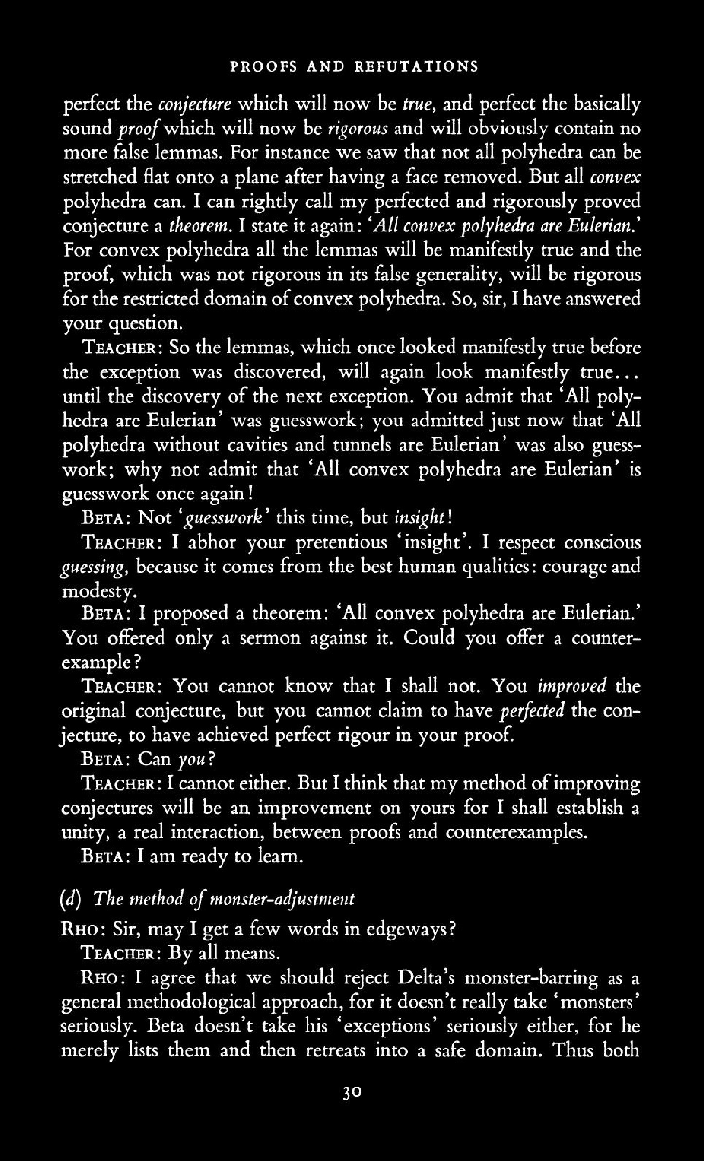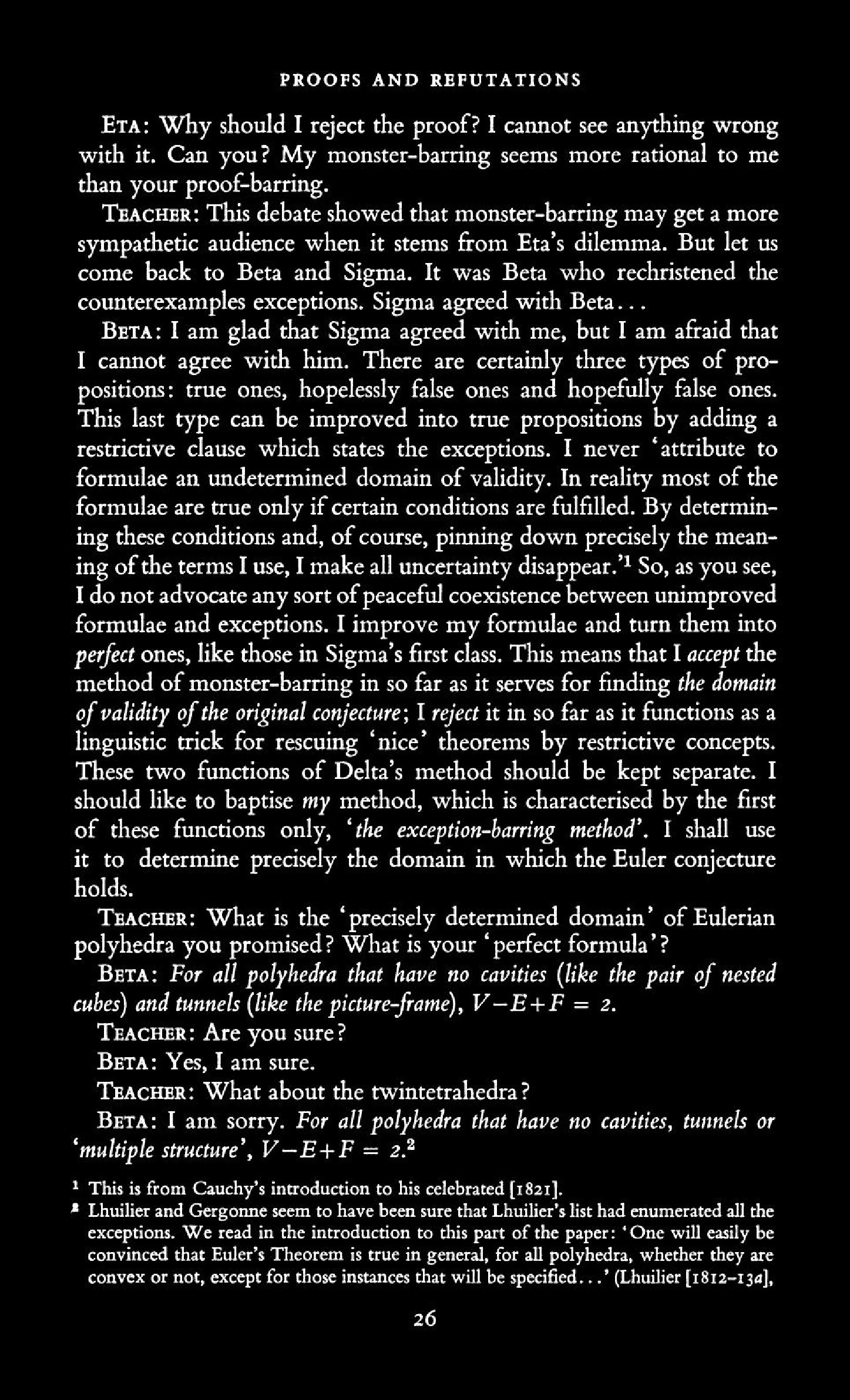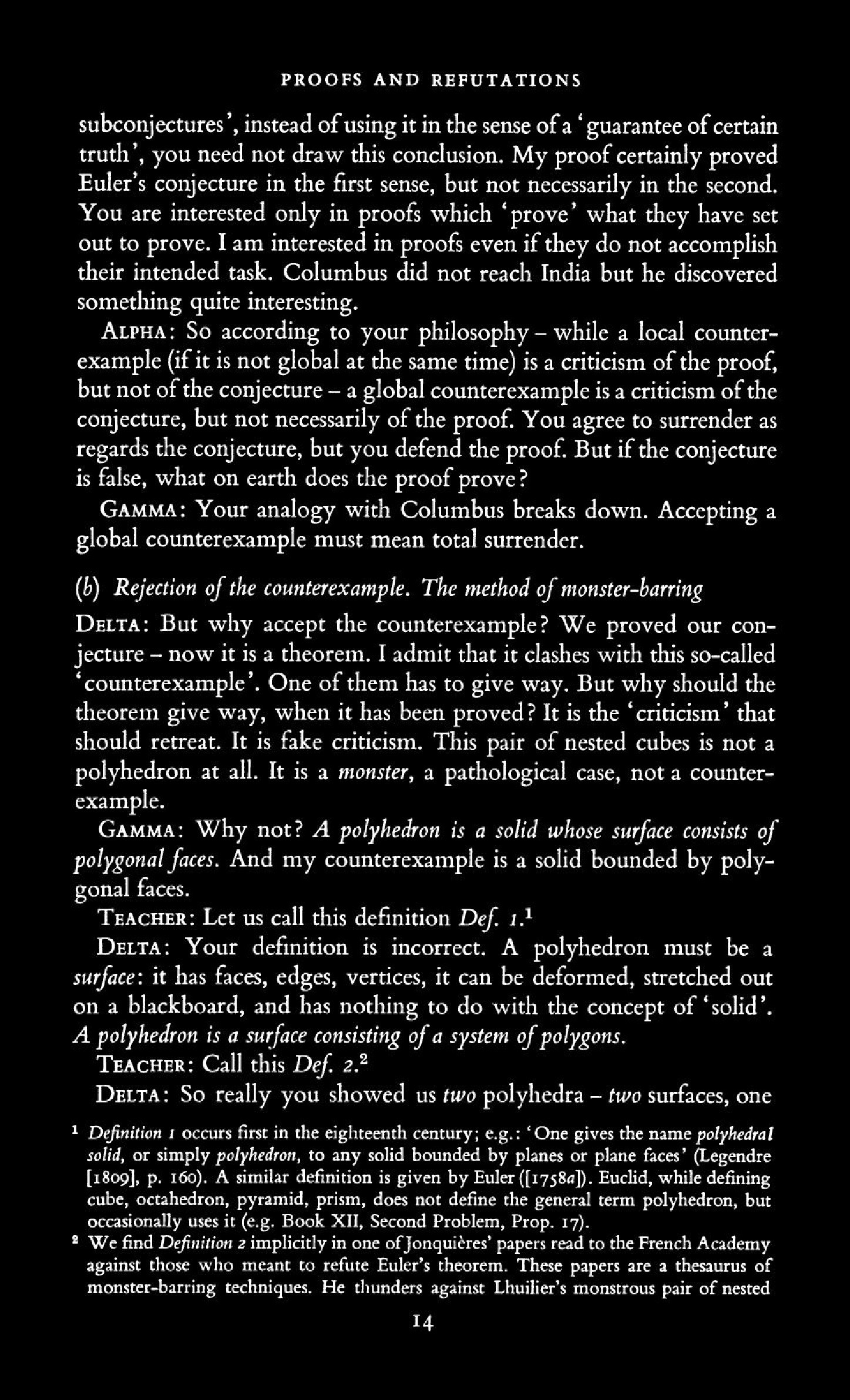 from Imre Lakatos: Proofs and Refutations, The Logic of Mathematical Disovery