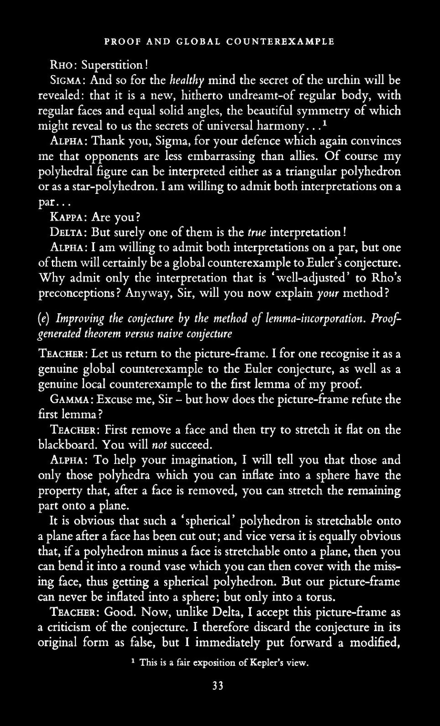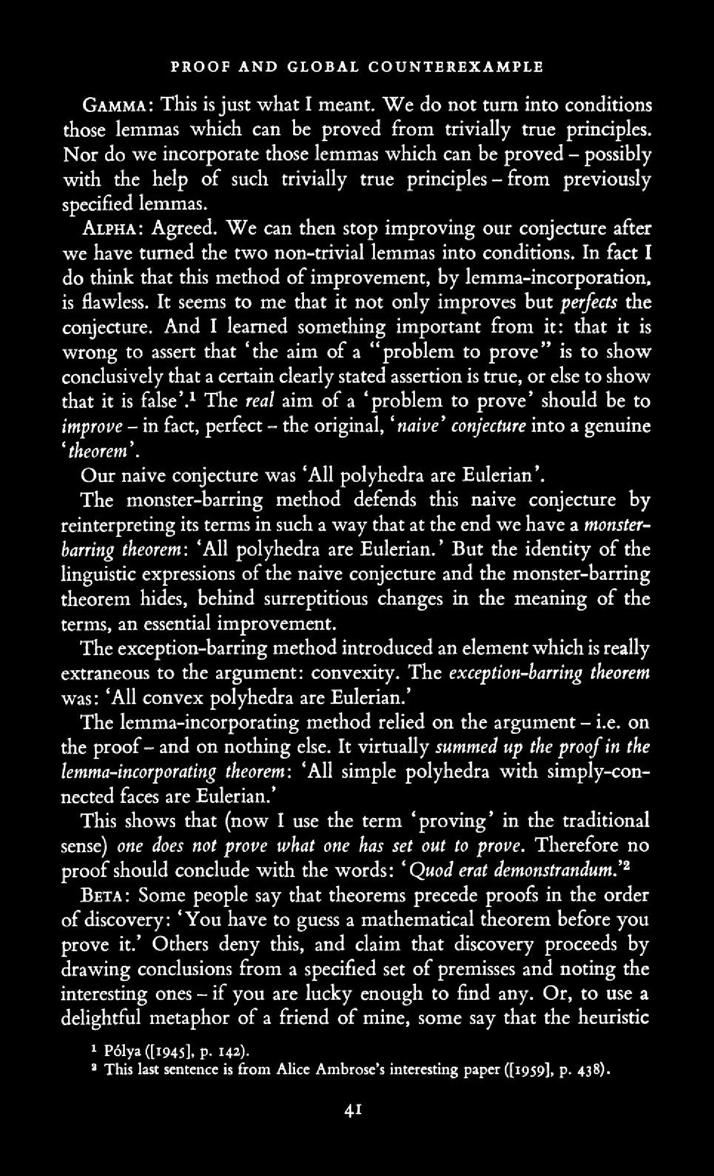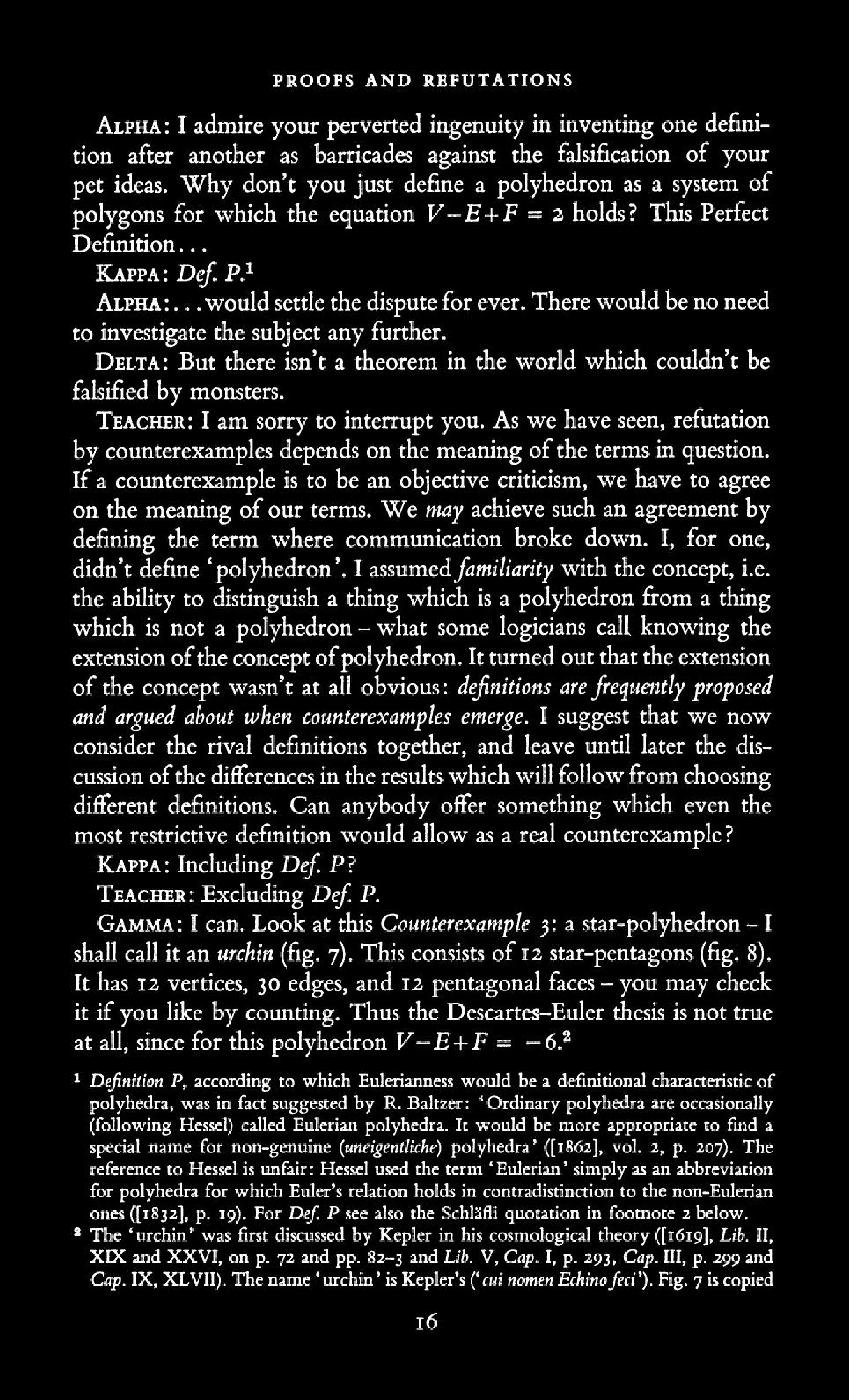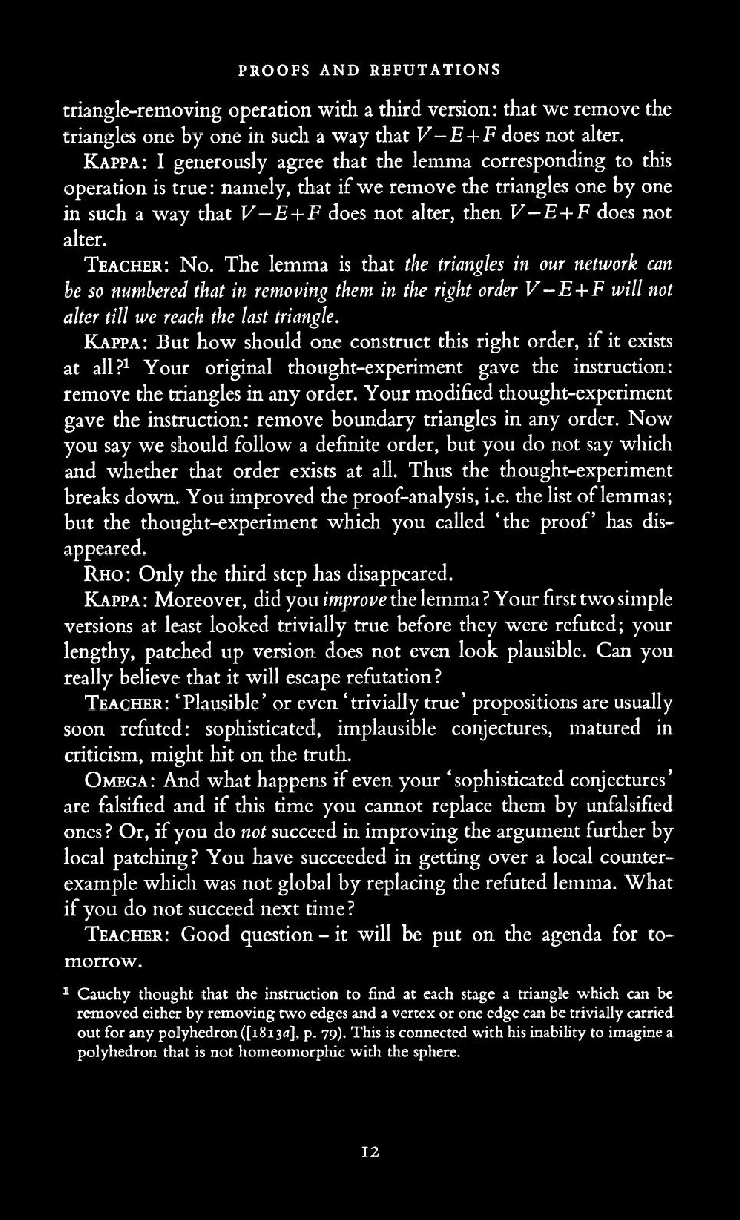 from Imre Lakatos: Proofs and Refutations, The Logic of Mathematical Disovery