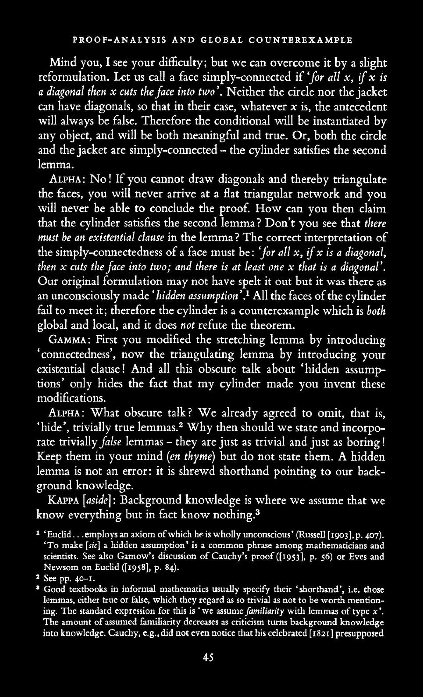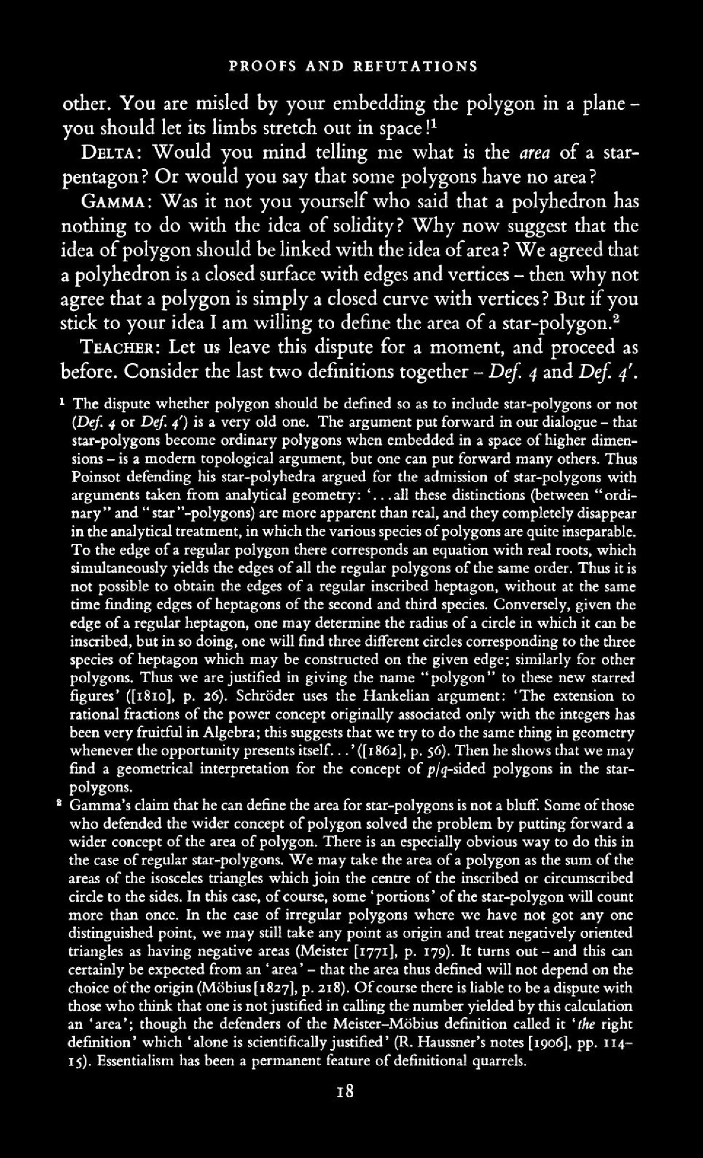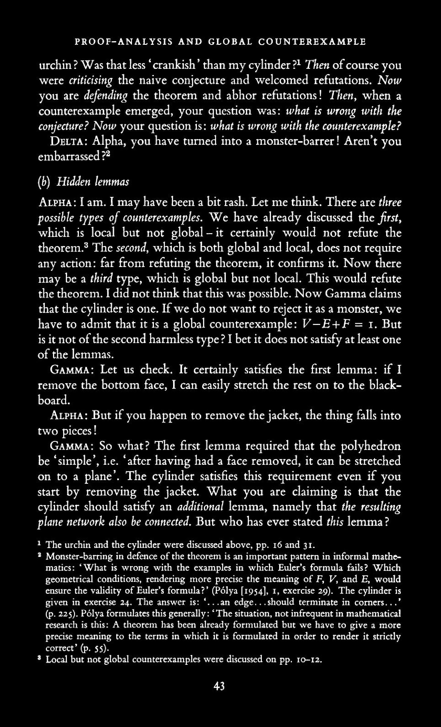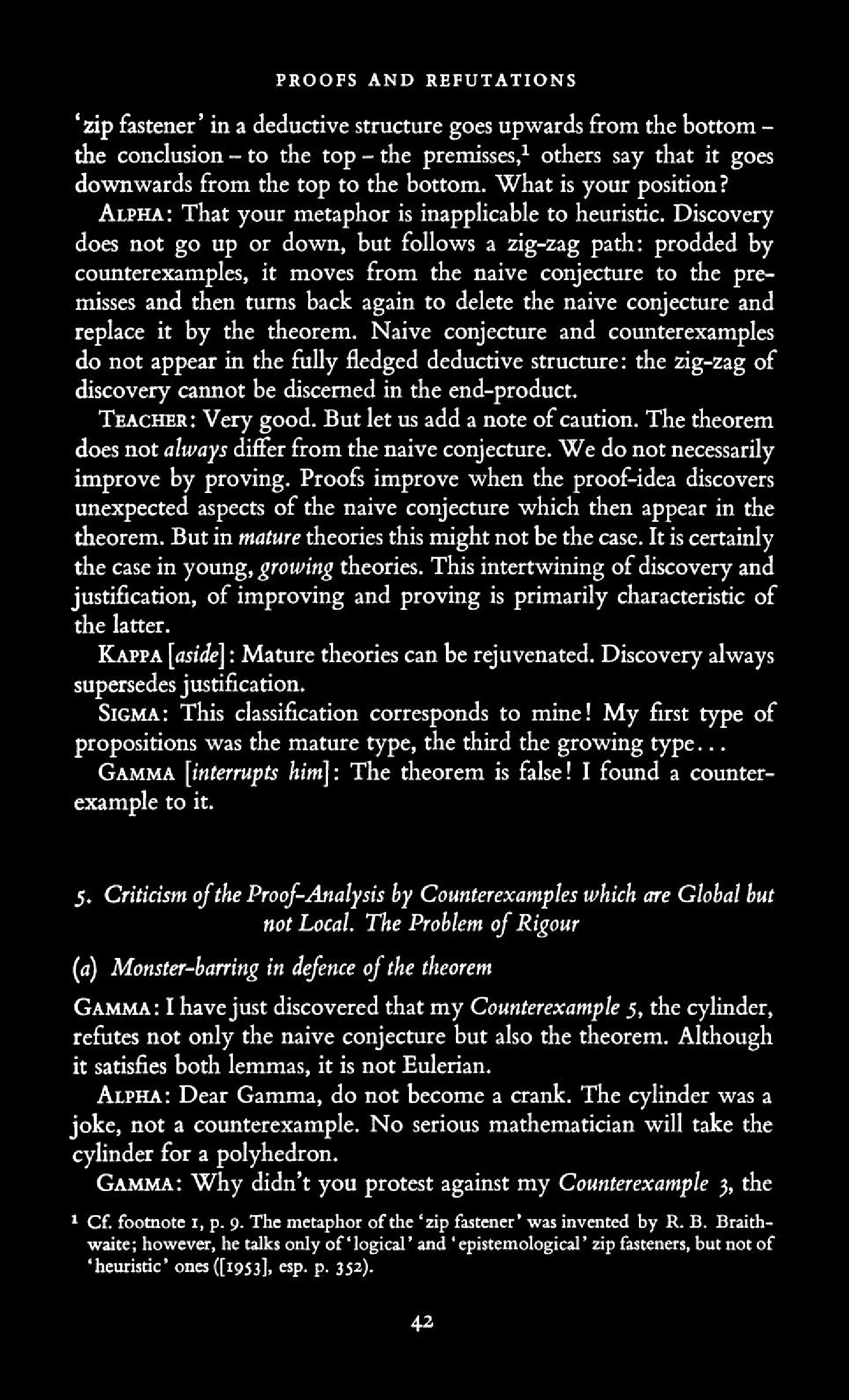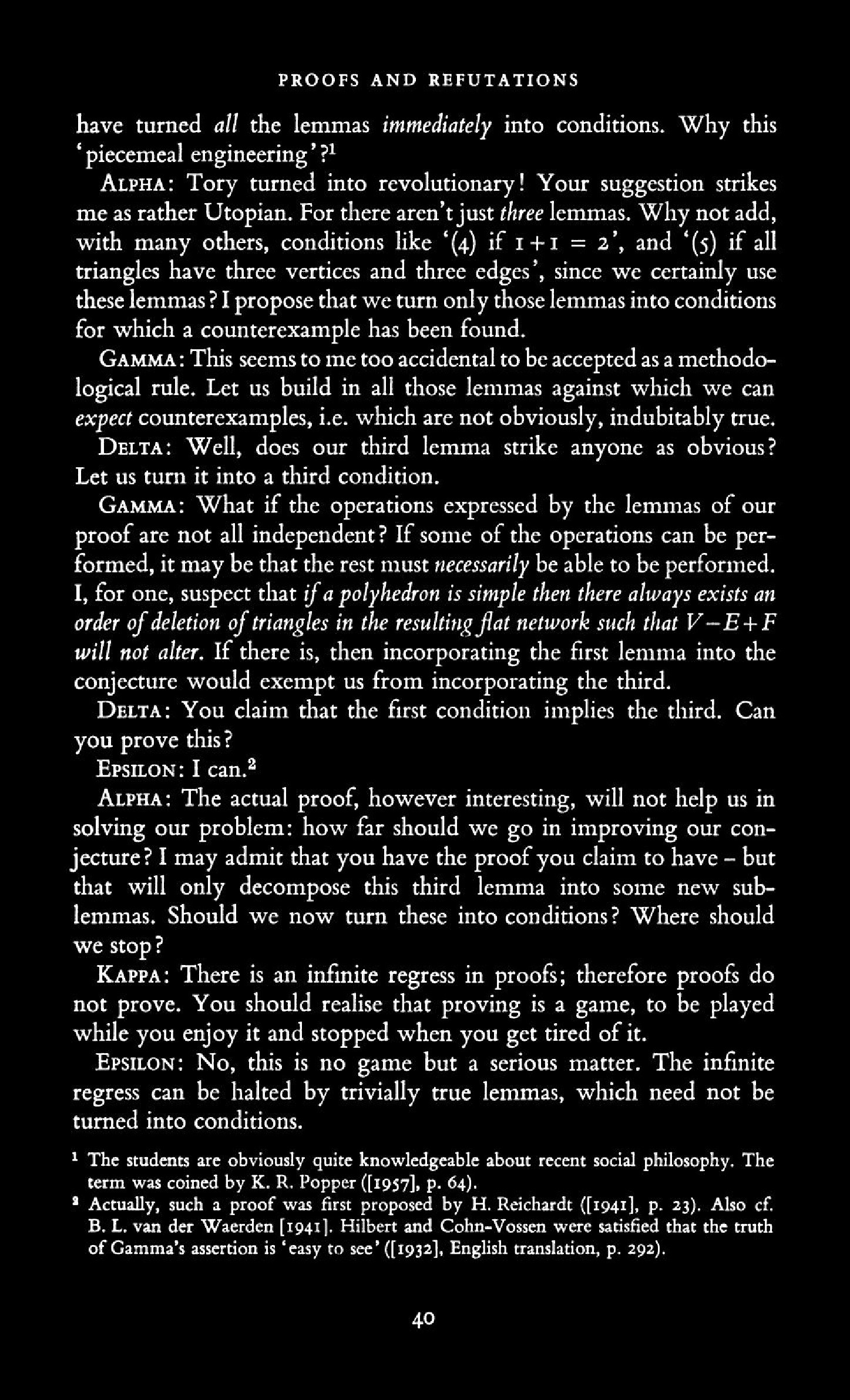 from Imre Lakatos: Proofs and Refutations, The Logic of Mathematical Disovery