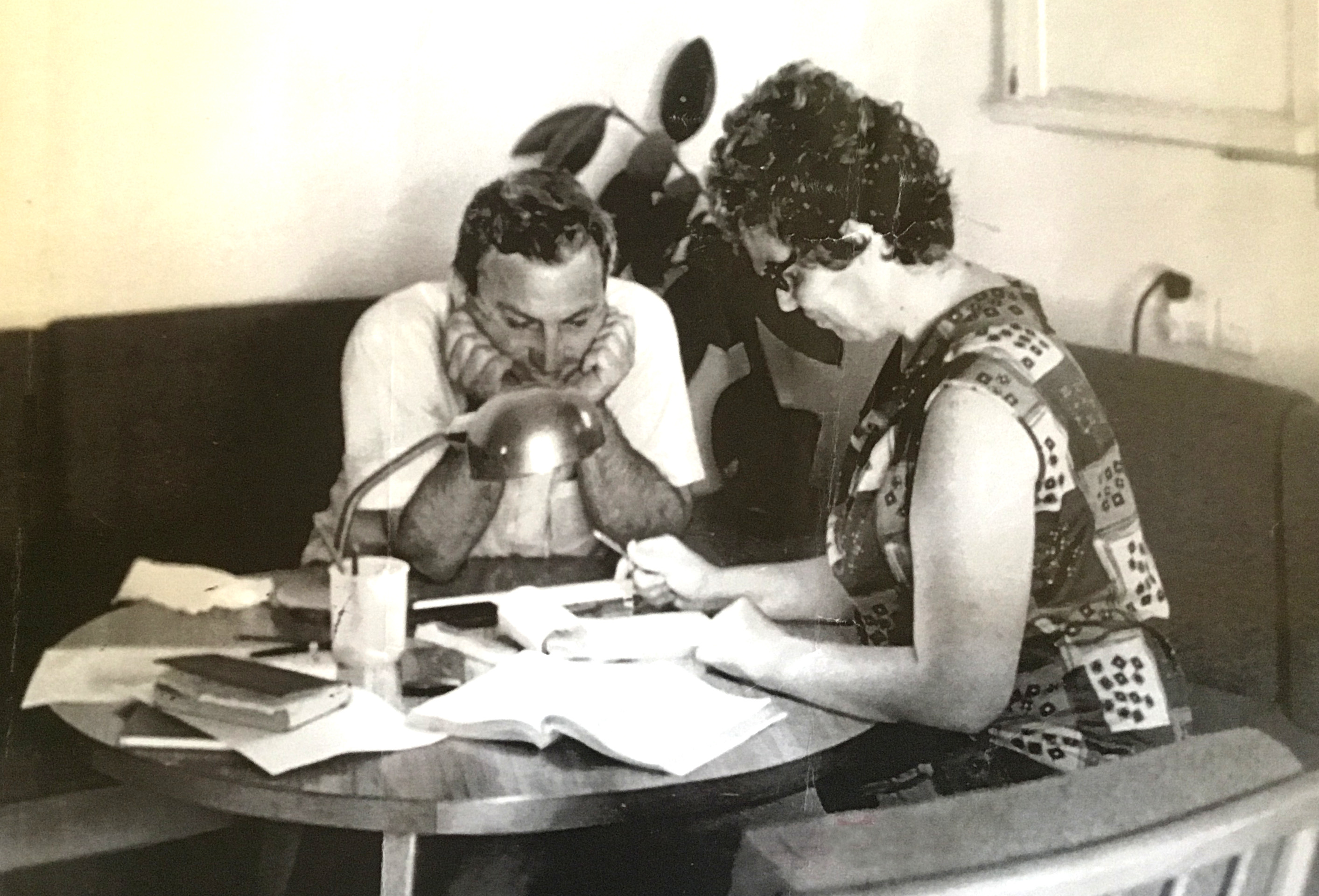 Margalit and her husband Aaron at wedding Margalit and her husband Aaron around 1972 doing math